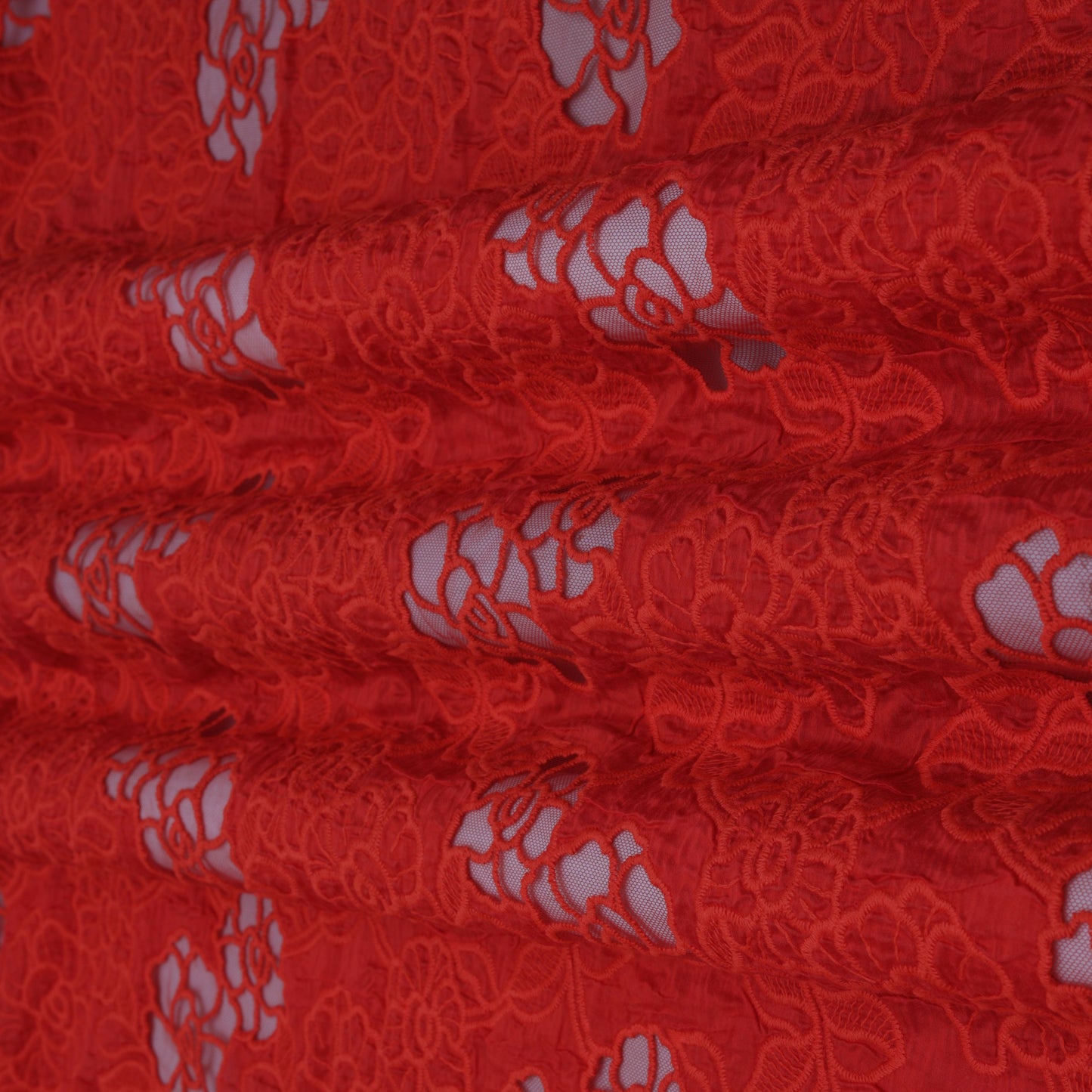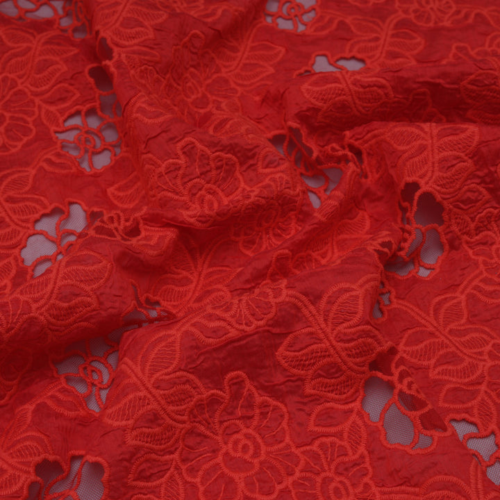Expertly crafted from premium crepe fabric, this Red Color Crepe Embroidery Fabric offers both durability and elegance. With its intricate embroidery, it adds a touch of sophistication to any garment. Perfect for creating stunning dresses, skirts, and blouses, this fabric is a must-have for any fashion-forward individual.
