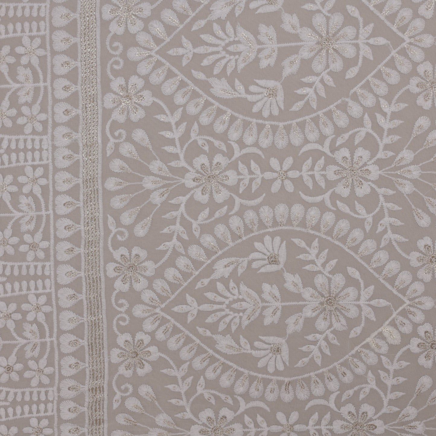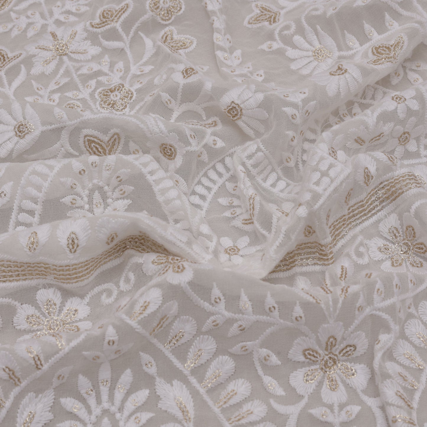 White Color Georgette Embroidery Fabric