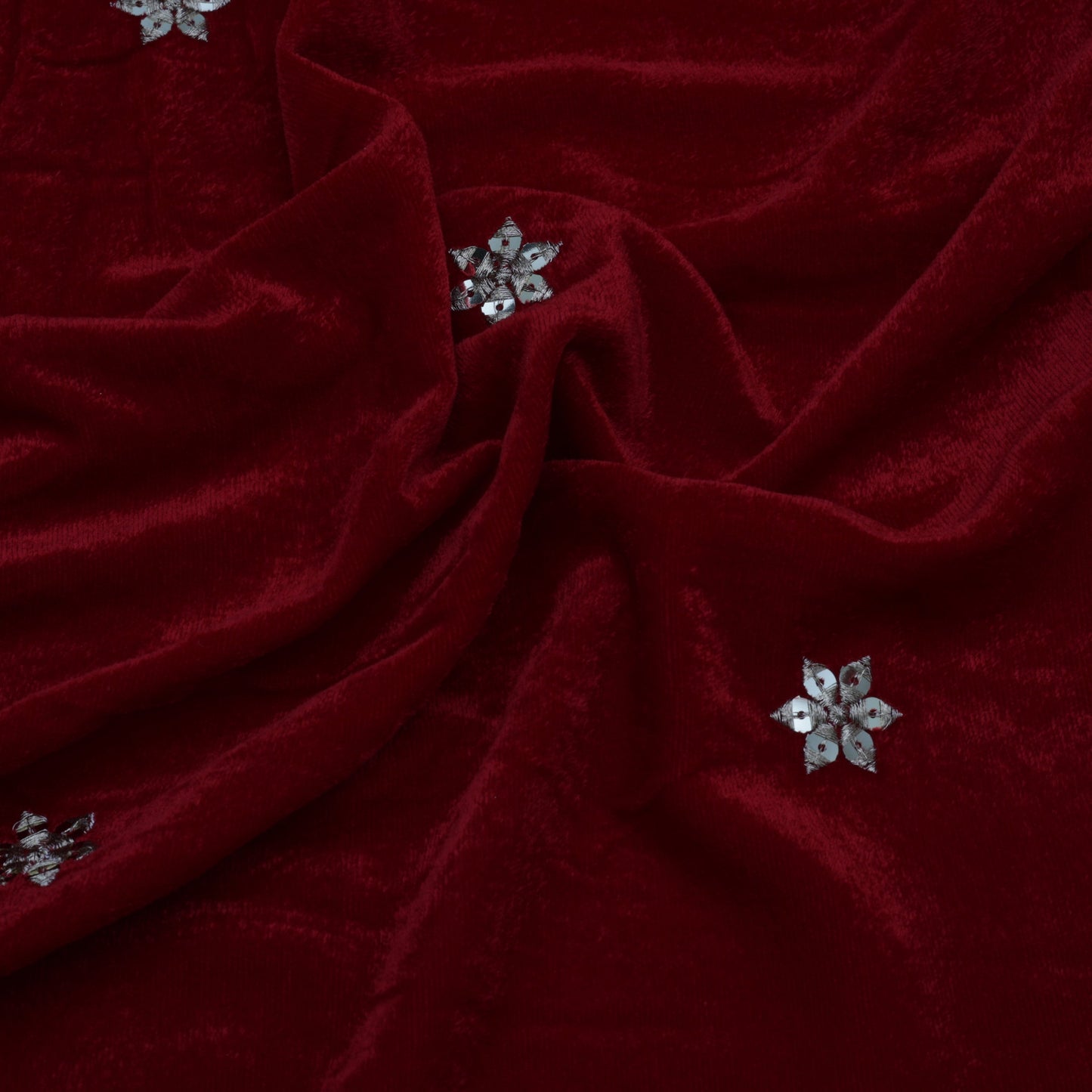 Red Color Velvet Border Embroidery Fabric