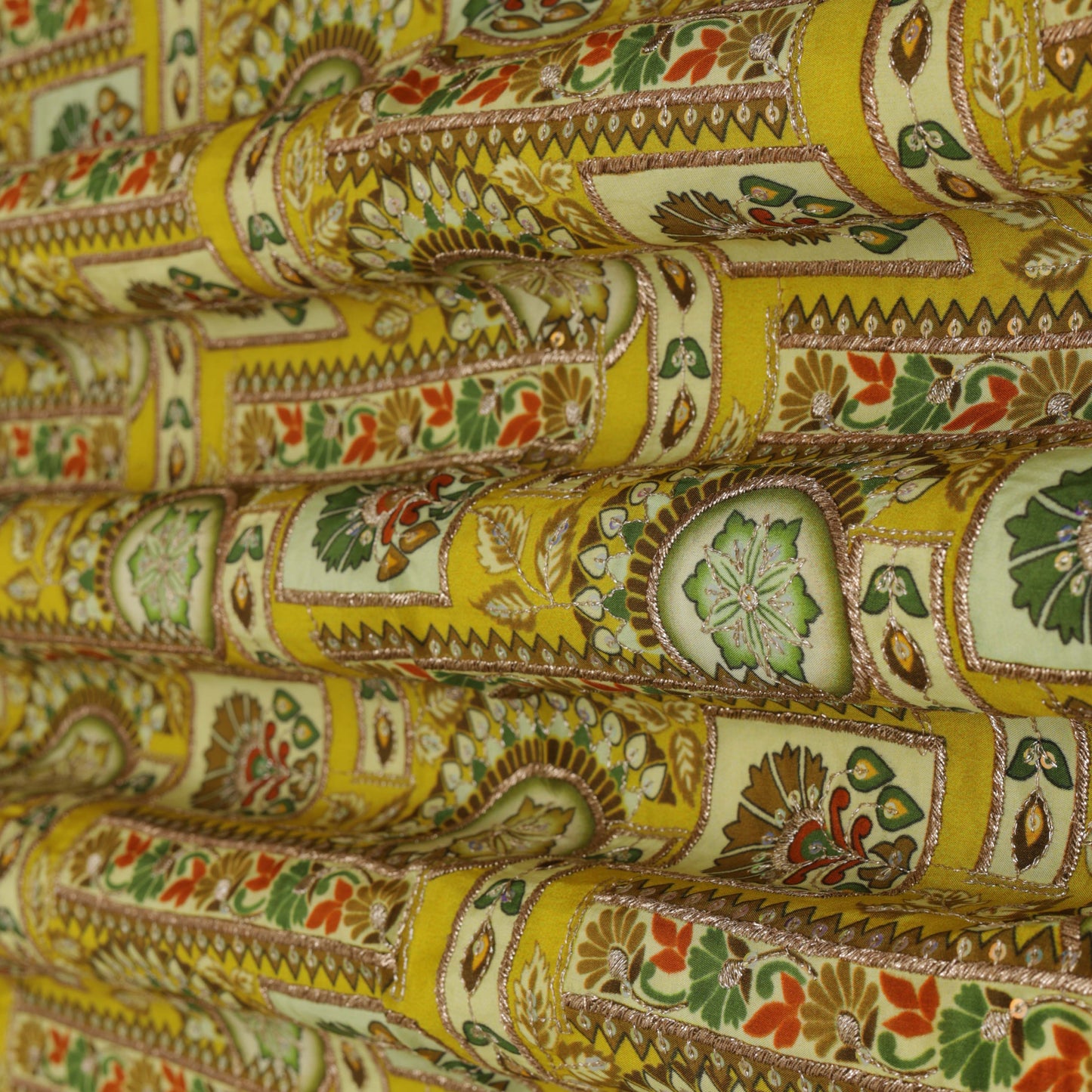 YELLOW Color Crepe Position Print Embroidery Fabric