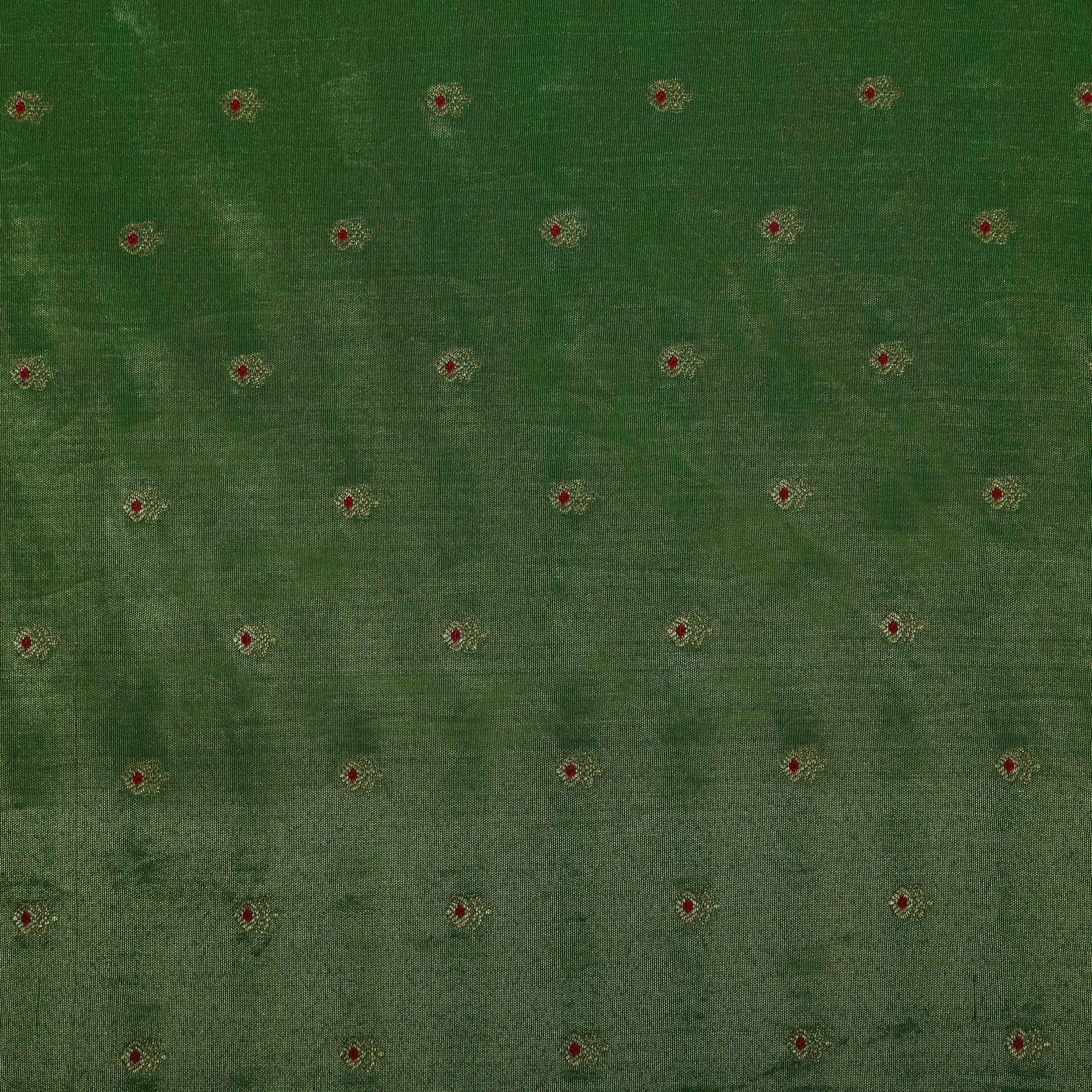 Green Color Katan Dupion Silk Brocade Fabric