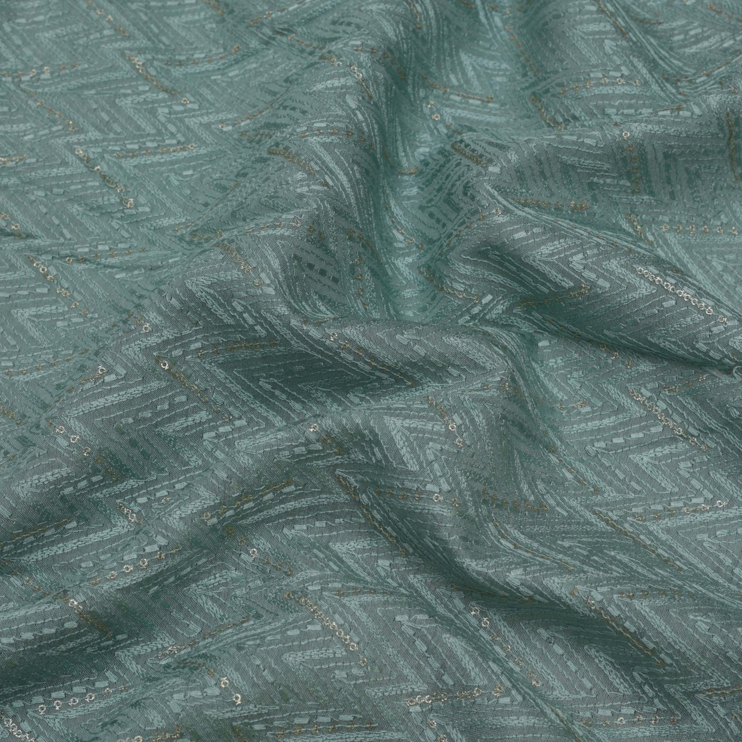 Sea Green Color Katan Munga Silk embroidery Fabric
