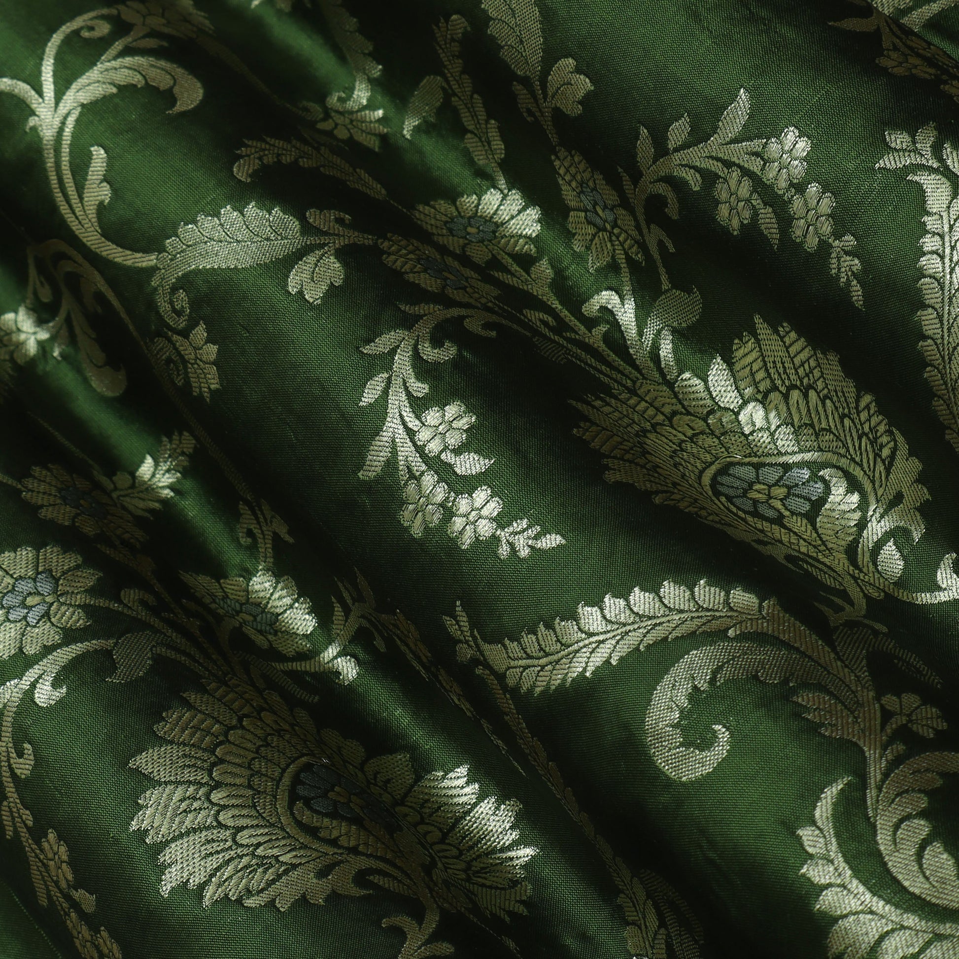 Mehndi Green Color Chinia Meena Brocade Fabric