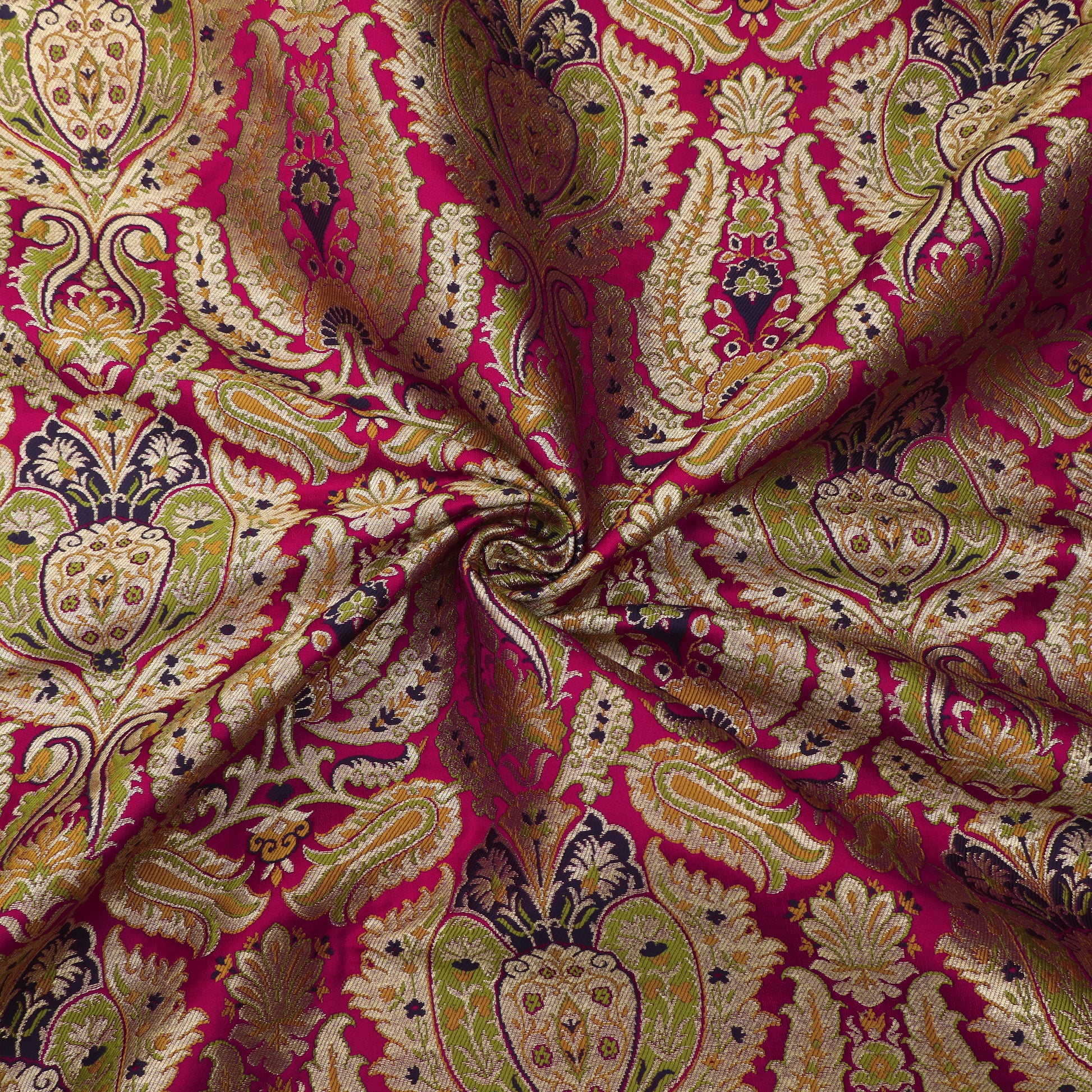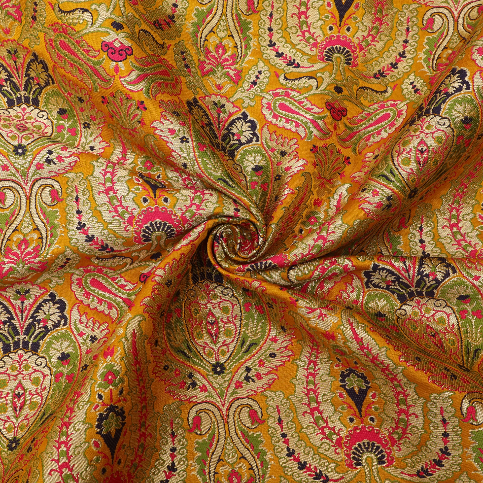 Perfect for bridal lehengas, wedding sarees, sherwanis, dupattas, and couture creations, Khimkhab Brocade is a fabric of celebration—crafted for occasions where luxury is meant to be seen and remembered.