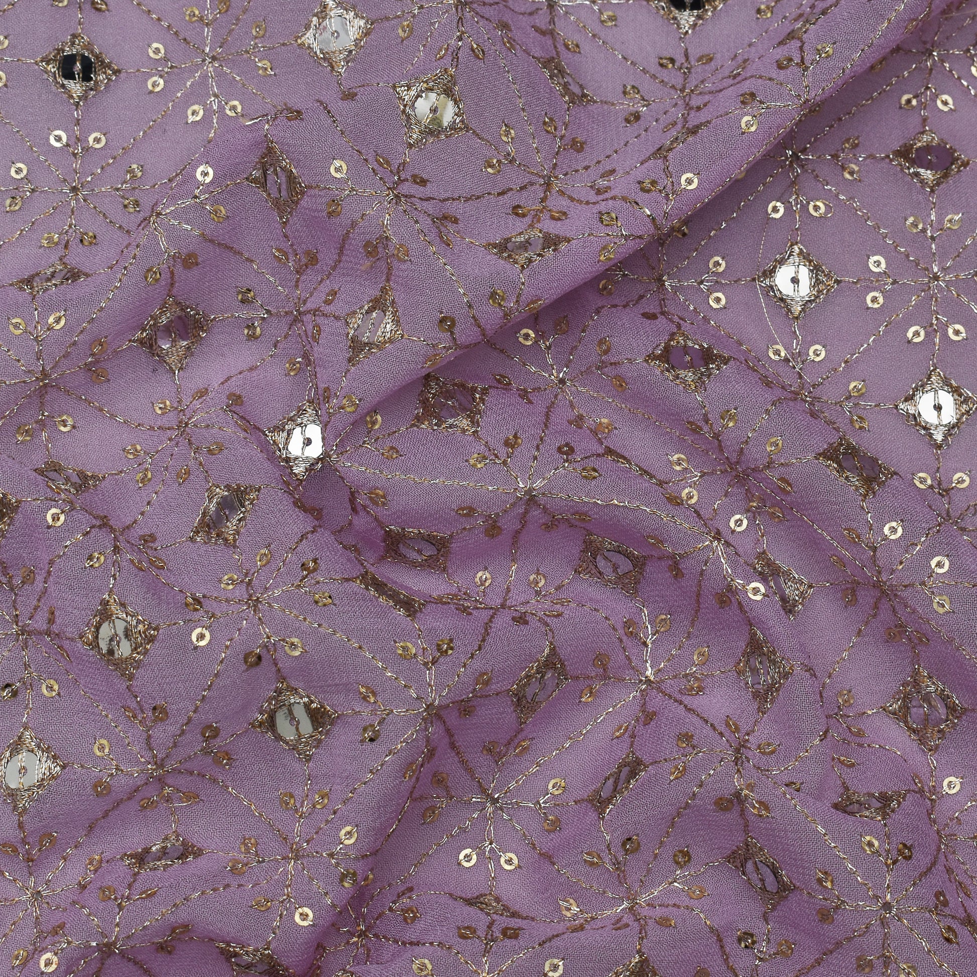 This Lavender Color Georgette Embroidery Fabric is a high-quality fabric that is perfect for creating stunning garments. Made from georgette material, this fabric has a delicate and flowy texture that is ideal for creating elegant and feminine looks. With its beautiful lavender color and intricate embroidery, this fabric will add a touch of sophistication to any outfit.