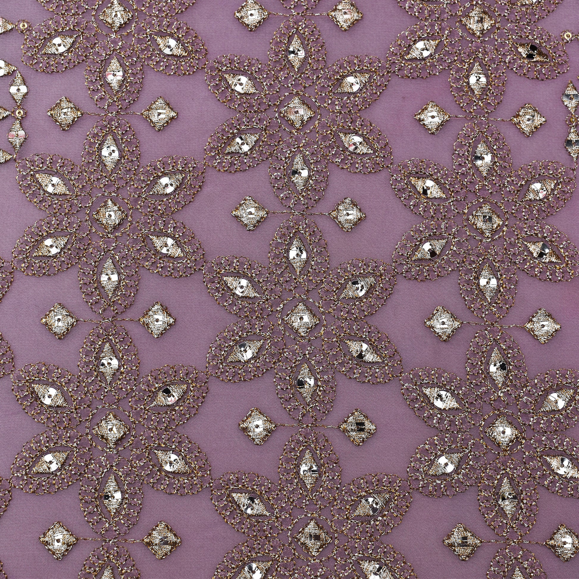 Expertly crafted from high-quality georgette fabric in a delicate lavender hue, this embroidery fabric is a must-have for any sewing project. Its beautiful embroidery adds an elegant touch to any design, making it perfect for creating unique and stylish garments. Don't settle for ordinary fabrics when you can elevate your creations with this stunning lavender embroidery fabric.