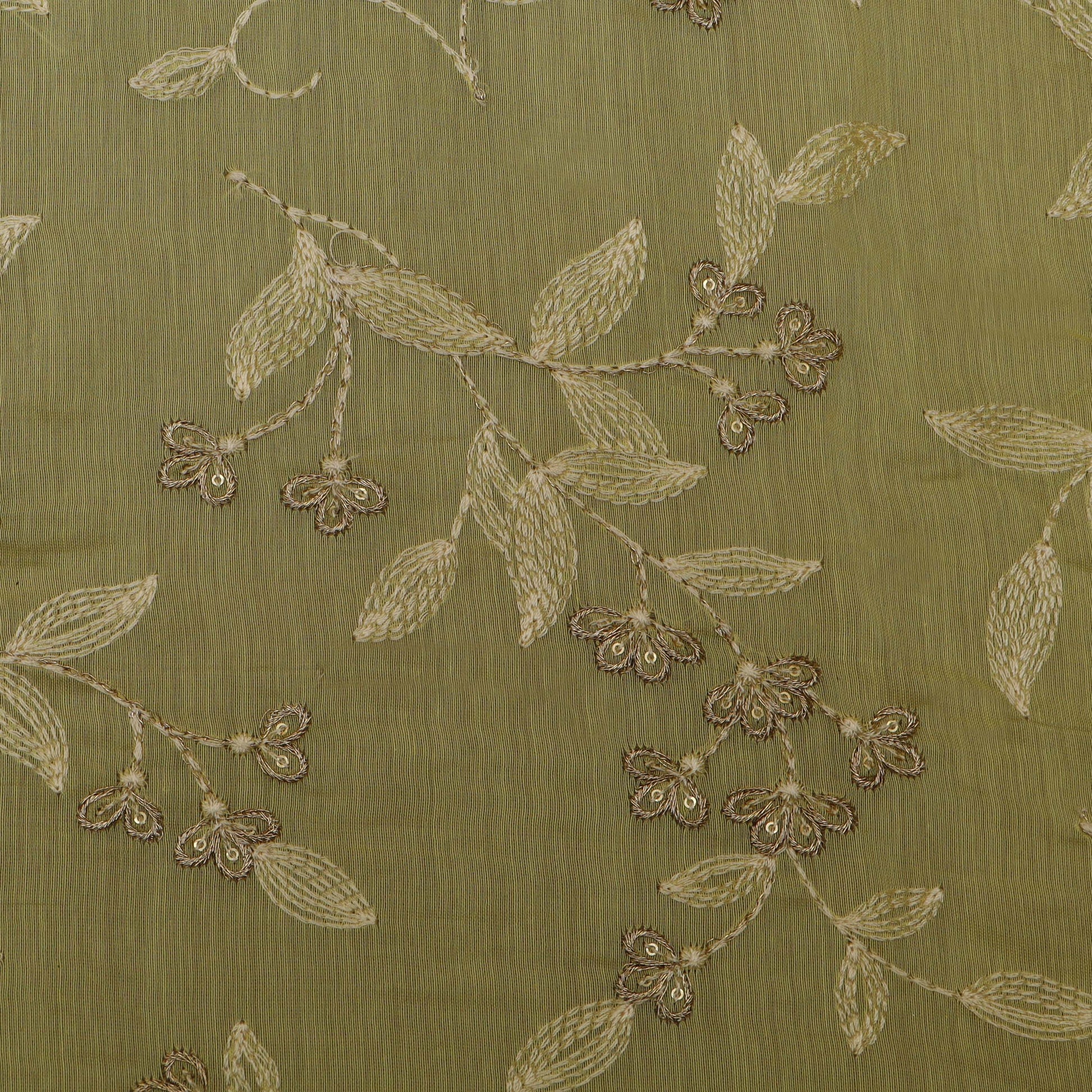 This lemon-colored Chanderi embroidery fabric is made from high-quality materials, providing an elegant and luxurious texture. Its intricate embroidery adds a touch of sophistication, making it perfect for formal and special occasions. With its vibrant color and delicate details, it is sure to elevate any outfit.