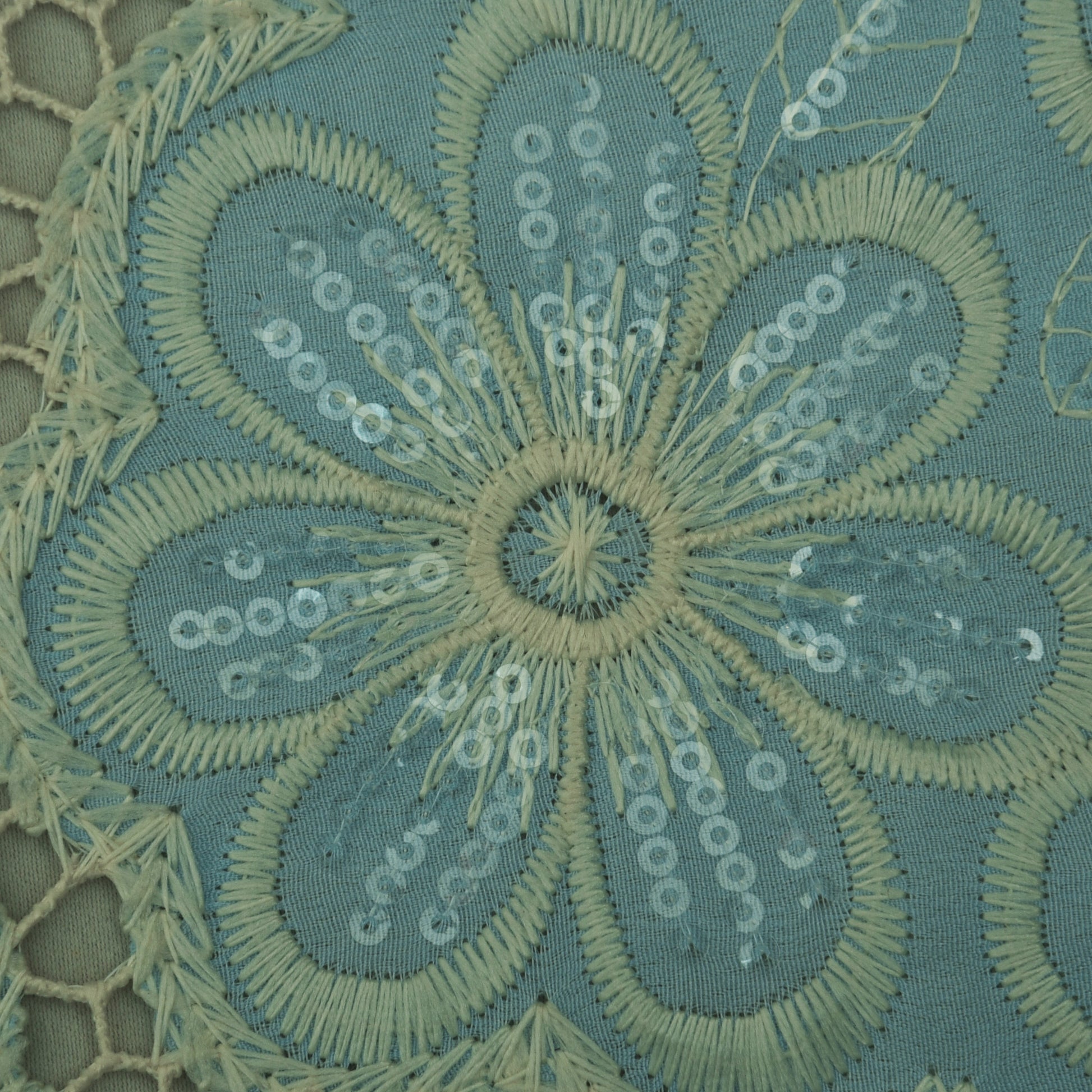 This light blue color crepe embroidery fabric is expertly crafted with delicate embroidery, adding a touch of elegance to any project. Made from high-quality material, it offers durability and a smooth drape for a professional finish. Ideal for creating beautiful garments and accessories.
