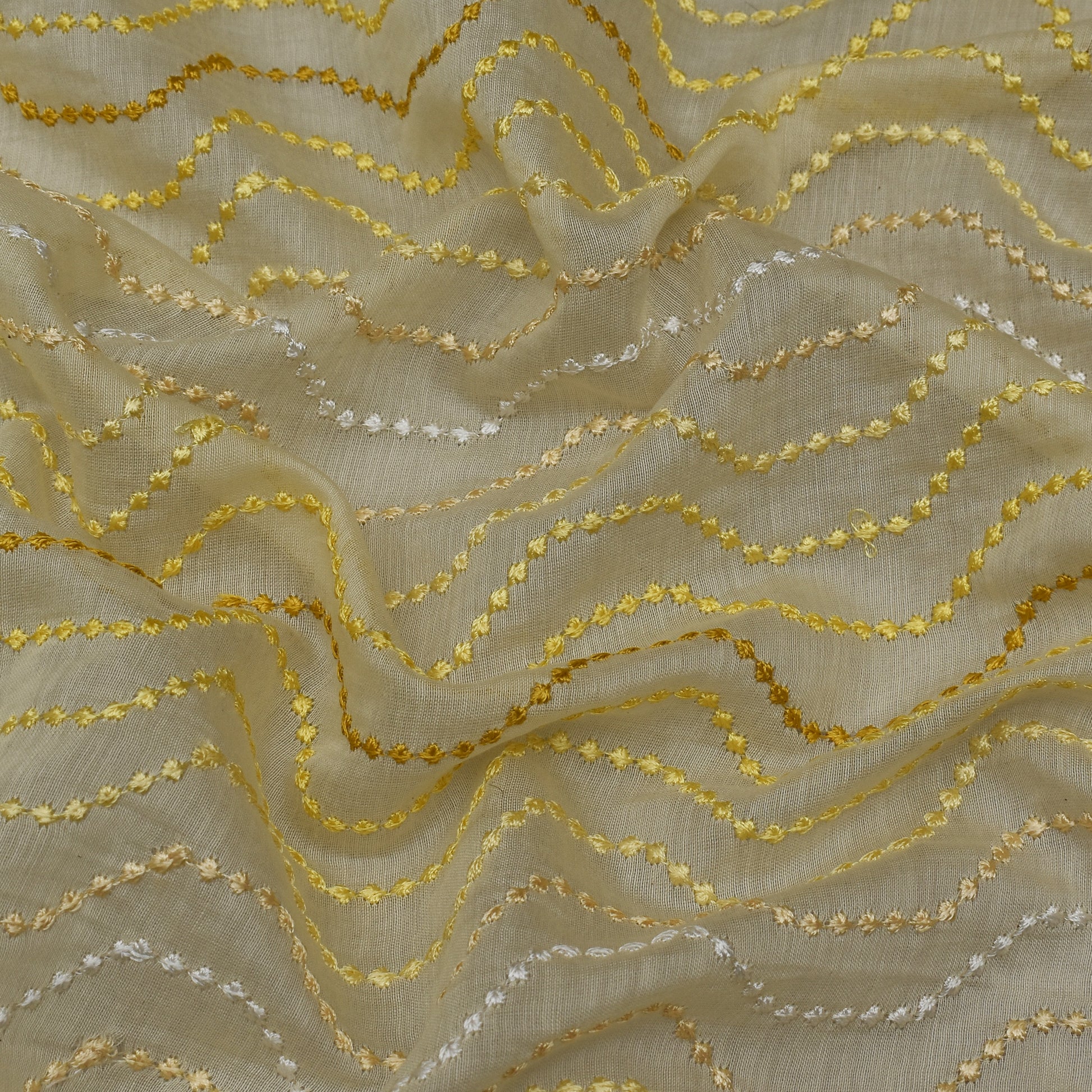 This Light Yellow Color Chanderi Embroidery Fabric is expertly crafted with delicate embroidery to add a touch of elegance to any garment or project. Made with high-quality chanderi fabric, it offers a soft and lightweight feel, perfect for creating comfortable and stylish outfits. Elevate your designs with this beautiful fabric.