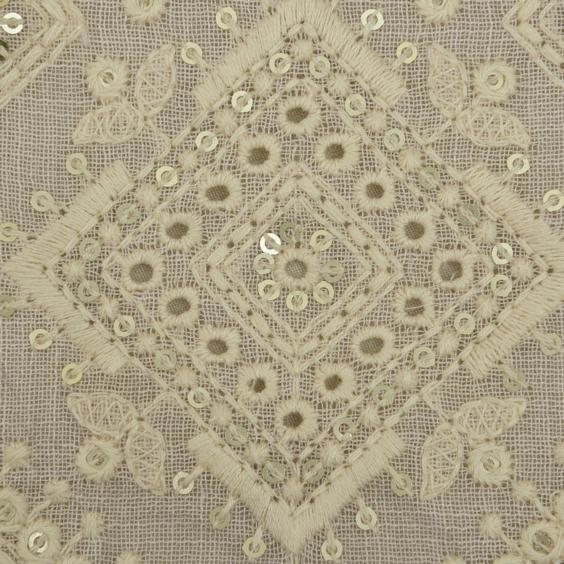 This linen fabric combines a classic border print with intricate embroidery, delivering both texture and visual sophistication. Its breathable, durable nature makes it suitable for high-quality garments and refined interior accents. The detailed embroidery enhances the fabric’s elegance, providing a premium material choice for expert designers.