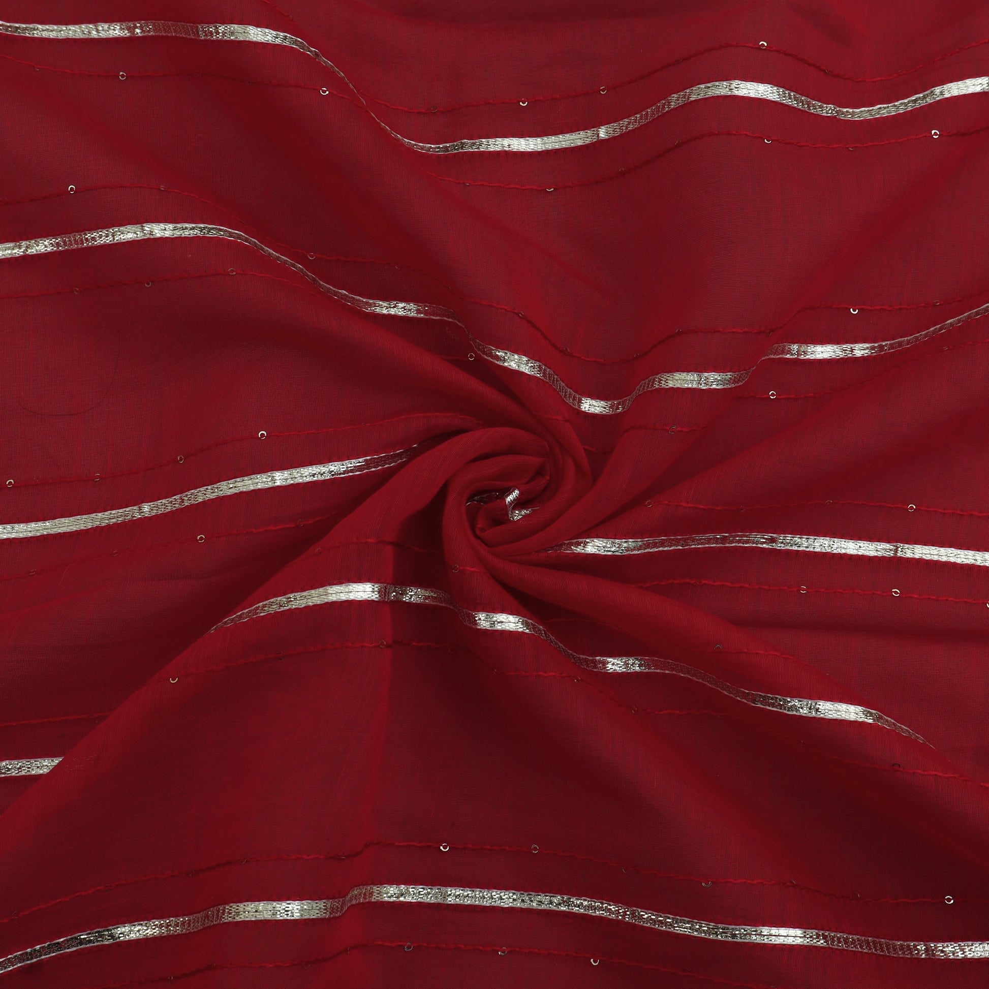 Enhance your wardrobe with our high-quality Maroon Color Chanderi Stripe Fabric. Made with 100% Chanderi material, this fabric is lightweight, soft, and durable, providing comfortable wear and easy maintenance. The striking maroon color and classic stripe pattern add a touch of elegance to any outfit.