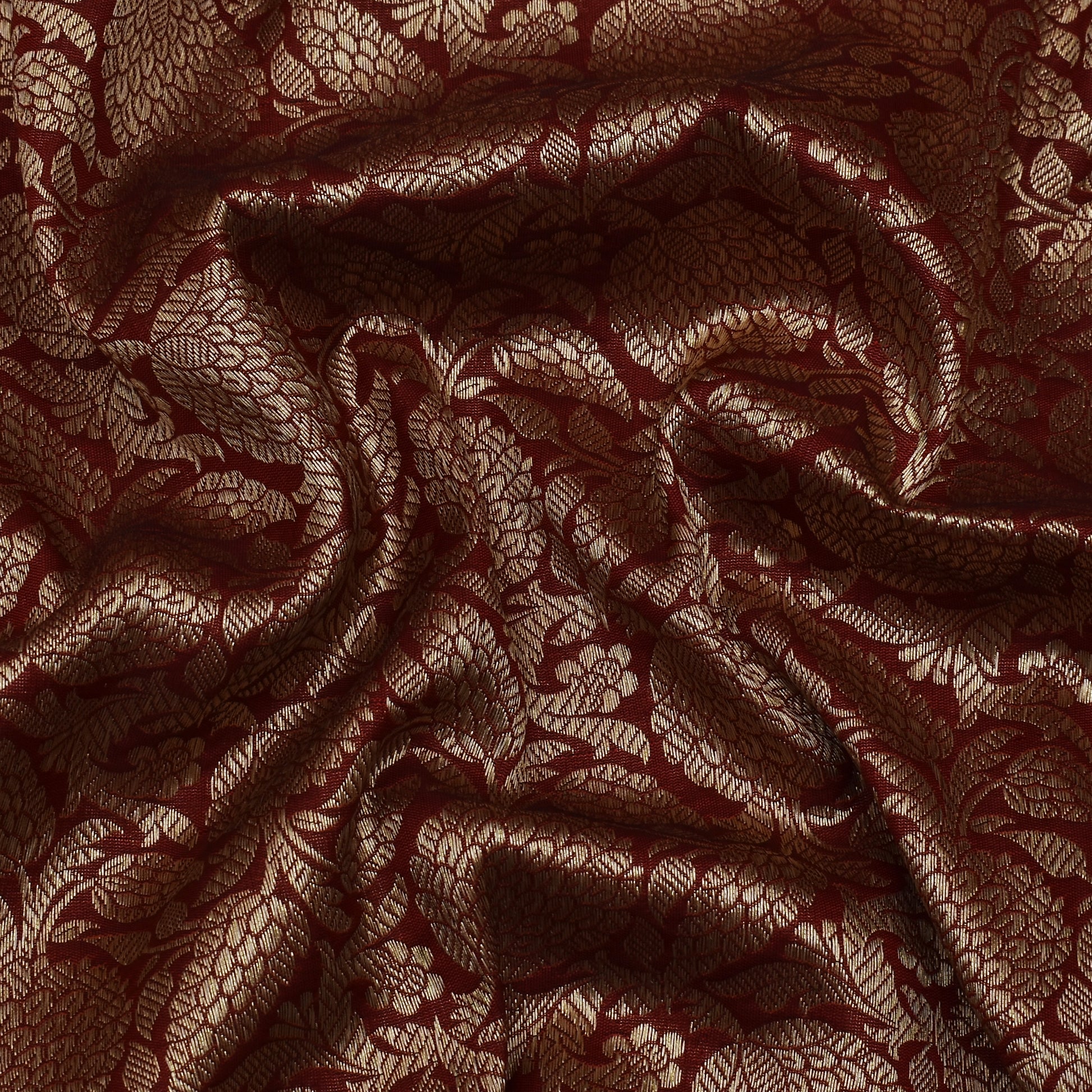 This stunning maroon color katan meena brocade fabric is a perfect addition to your collection. Made with intricate craftsmanship, this fabric is soft, lightweight, and durable. With its rich color and intricate design, it will elevate any outfit, making you stand out from the crowd.
