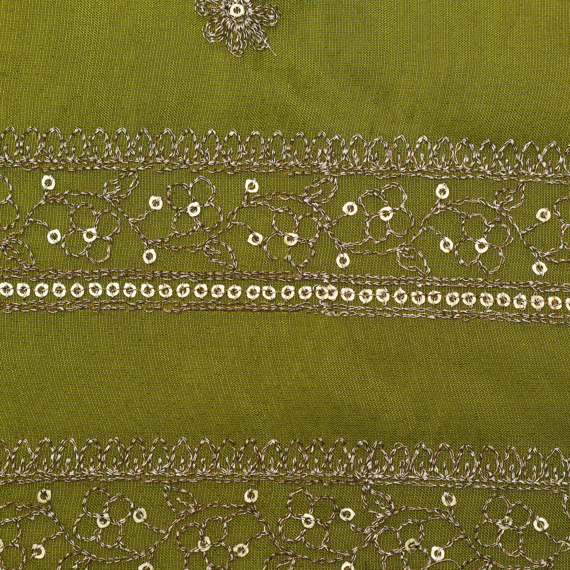 Mehandi Green Color Tissue Zari Embroidery Fabric