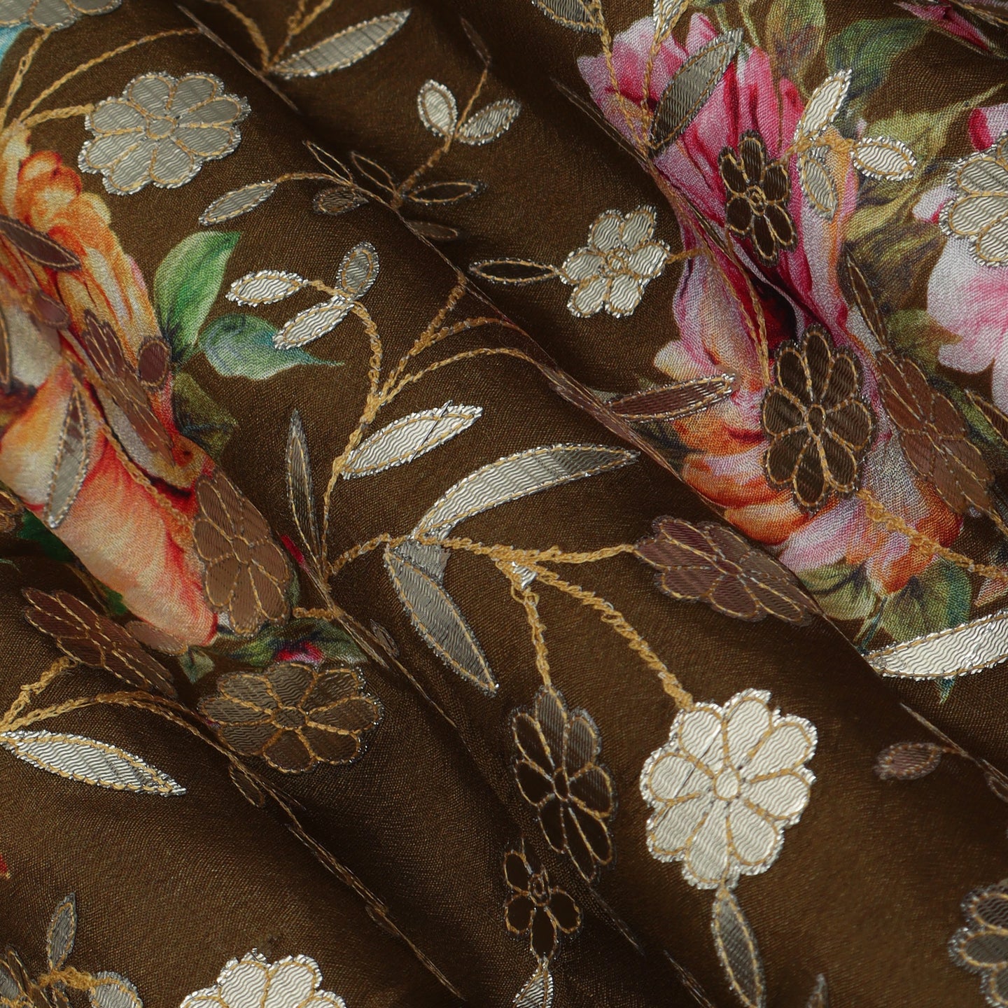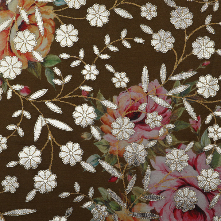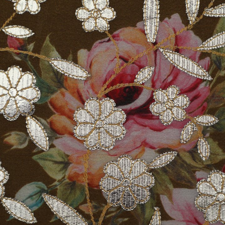 Mehendi Green Color Chinon Hydra Print Gota Work Fabric