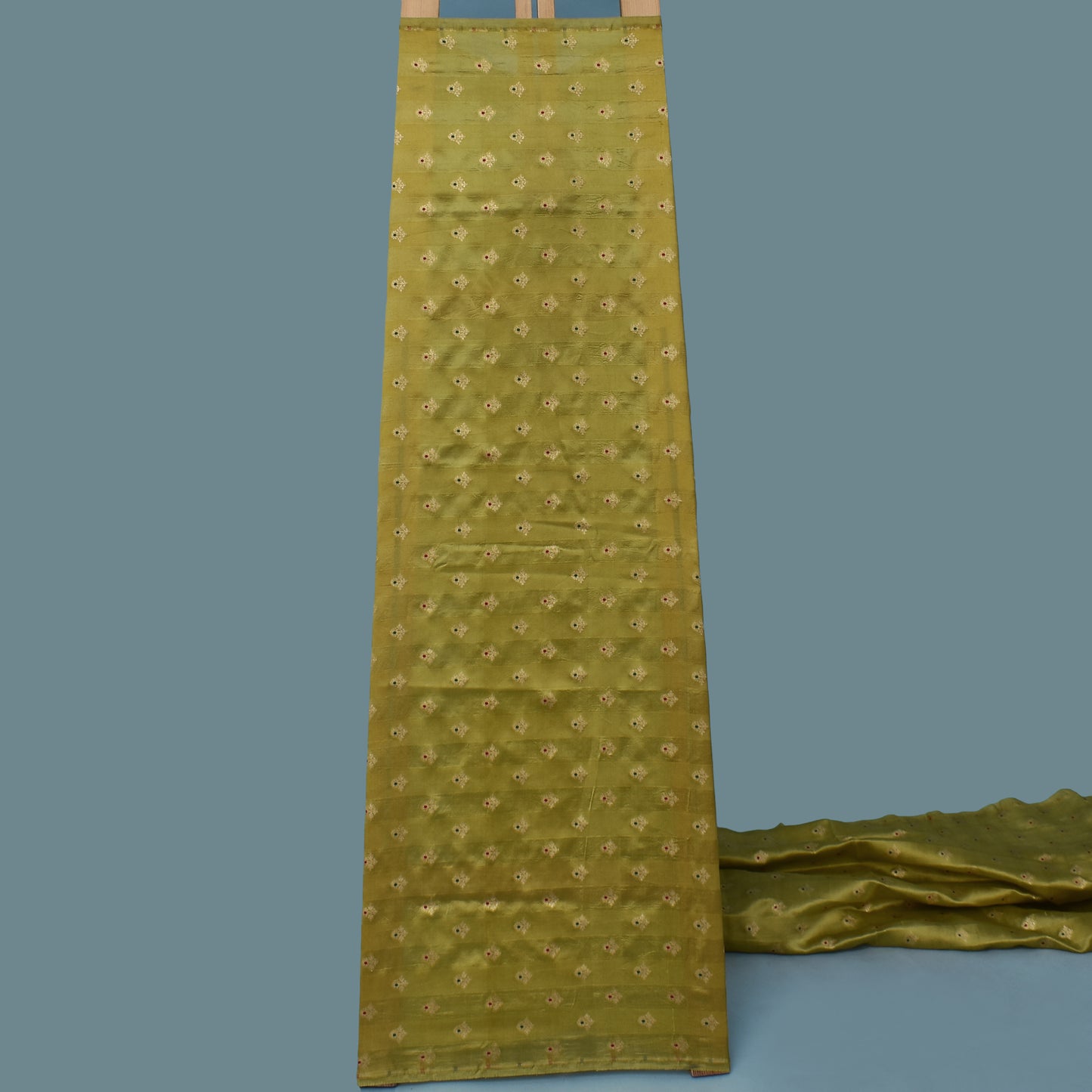 Expertly designed for traditional Indian attire, our Mehndi Green Color Brocade Fabric is the perfect choice for crafting stunning outfits. Made with high-quality materials, this fabric boasts intricate embroidery and a rich, vibrant color that will make any garment stand out. Elevate your wardrobe with this exquisite fabric.