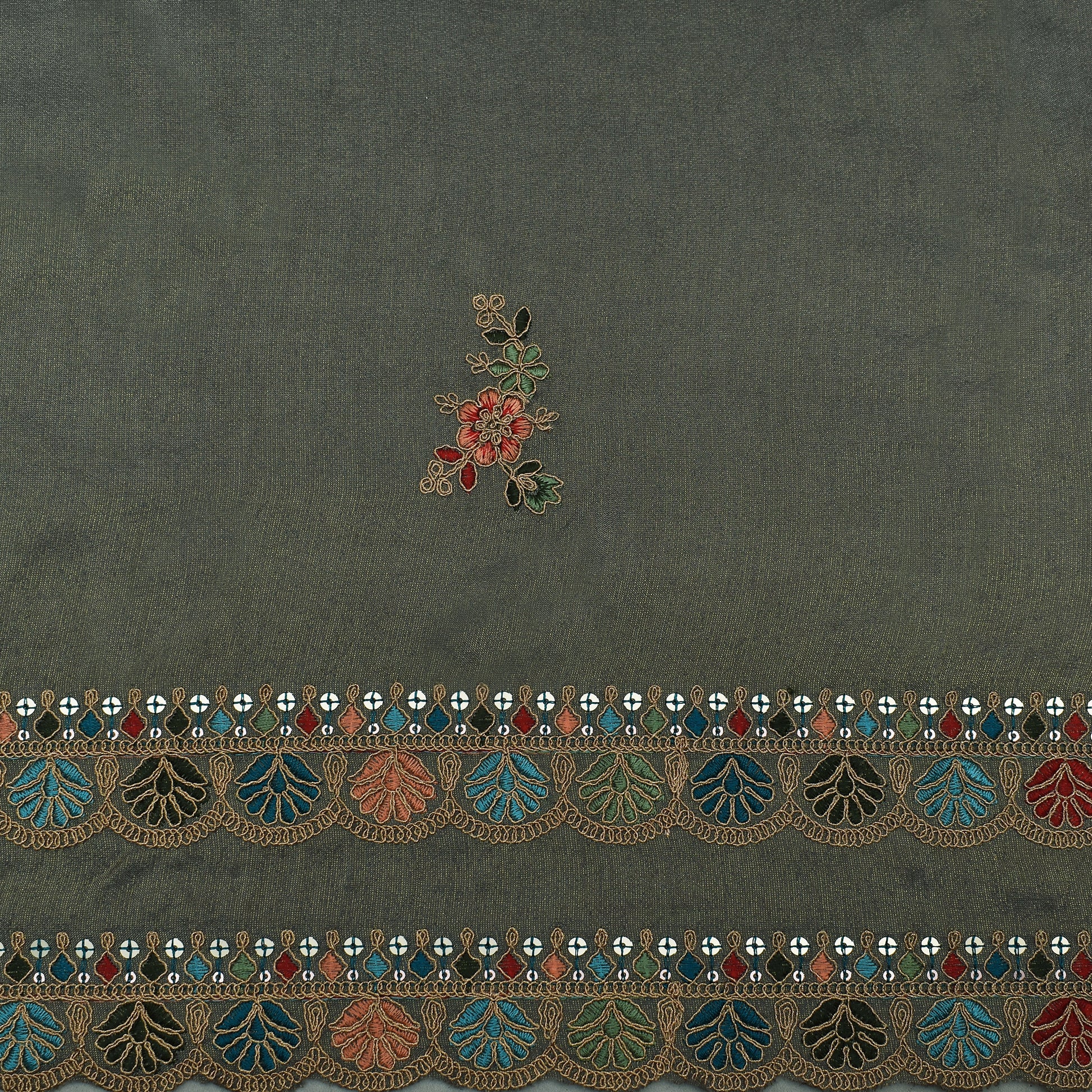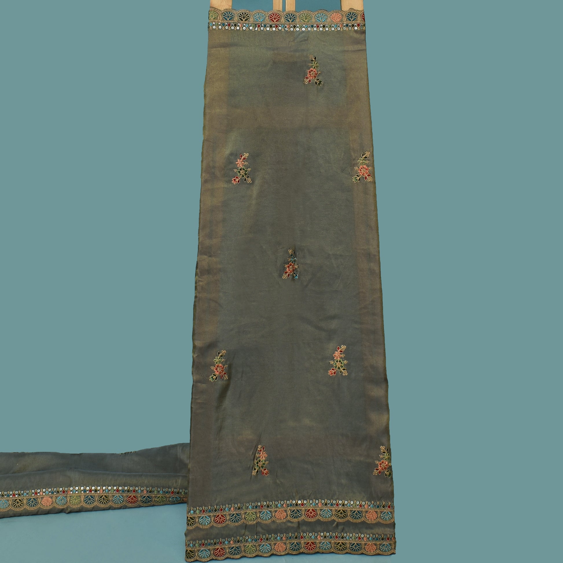 This mint green tissue booti fabric features delicate embroidery for a touch of elegance. Made with high-quality materials, it is perfect for creating stunning garments and home decor. Its soft texture and intricate design make it a versatile and timeless addition to any project.