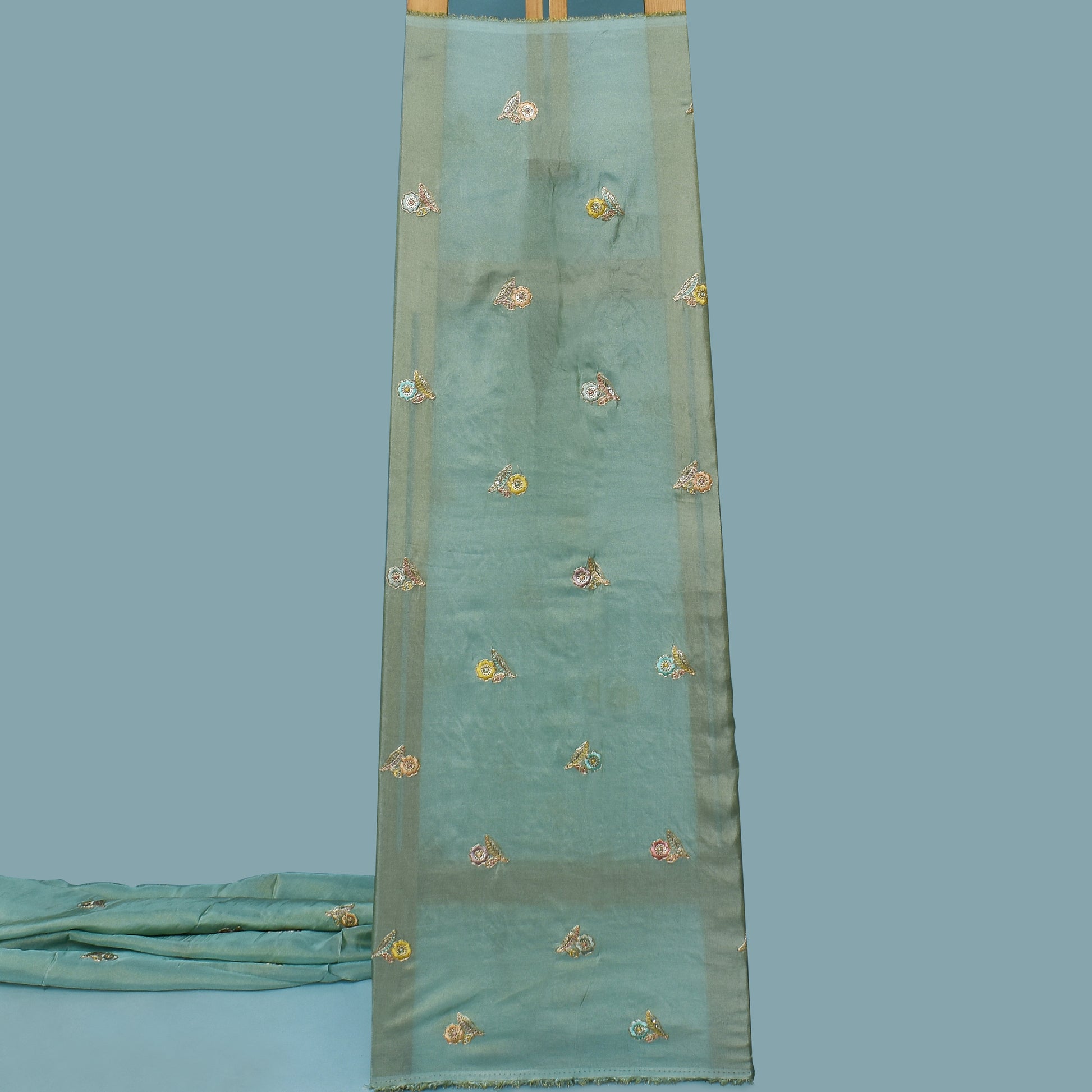 Experience the luxurious softness and delicate beauty of our Mint Green Color Tissue Booti Fabric. Made from high-quality materials, this fabric features a charming booti pattern that adds a touch of sophistication to any project. Its mint green color is perfect for adding a subtle pop of color to your designs. Elevate your crafts with this elegant fabric.