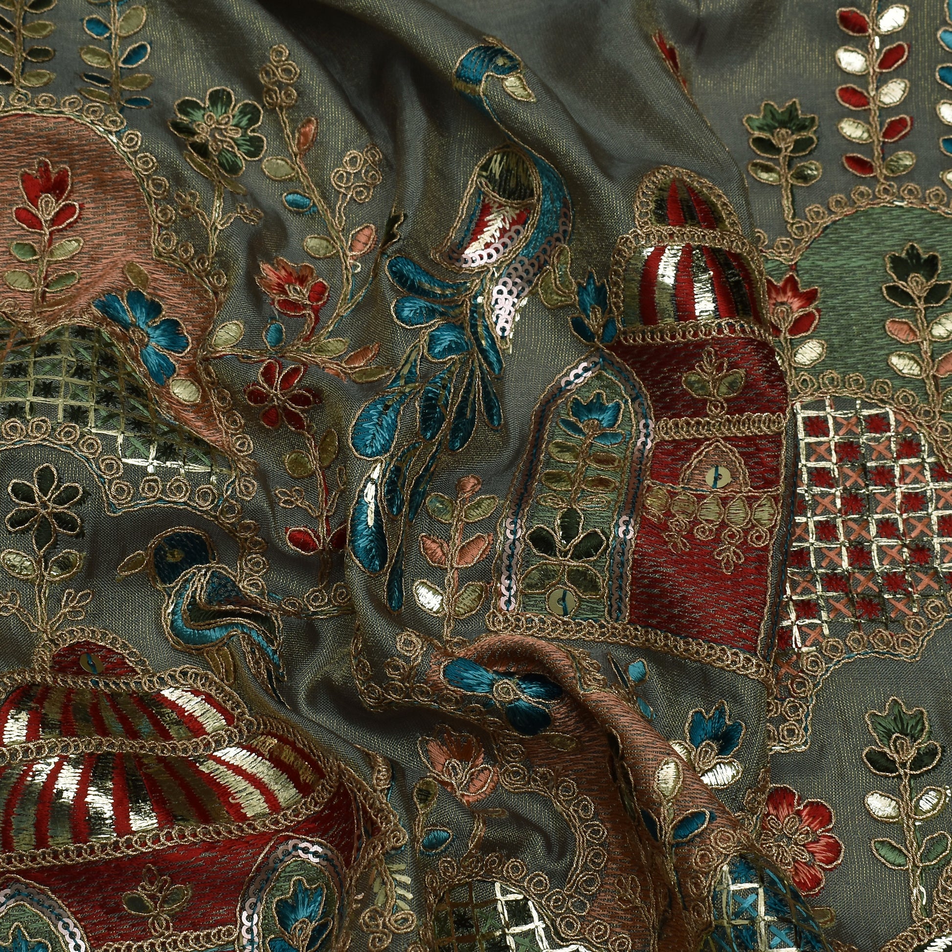 This Mint Green Color Tissue Border Embroidery Fabric is perfect for adding a touch of elegance to any project. Its delicate embroidery and soft mint green color will elevate any design. Made from high-quality tissue fabric, it is lightweight and easy to work with. Create beautiful and unique pieces with this fabric.