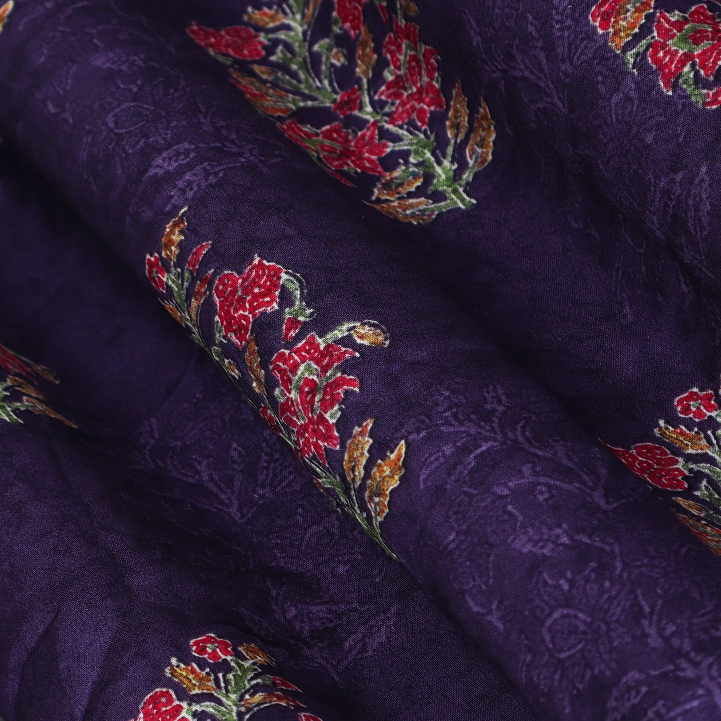 This luxurious Purple Color Modal Satin print fabric is perfect for adding a touch of elegance to any garment or home decor. With its soft feel and beautiful print, it provides both style and comfort. Made from high-quality materials, it is sure to last and elevate any project.