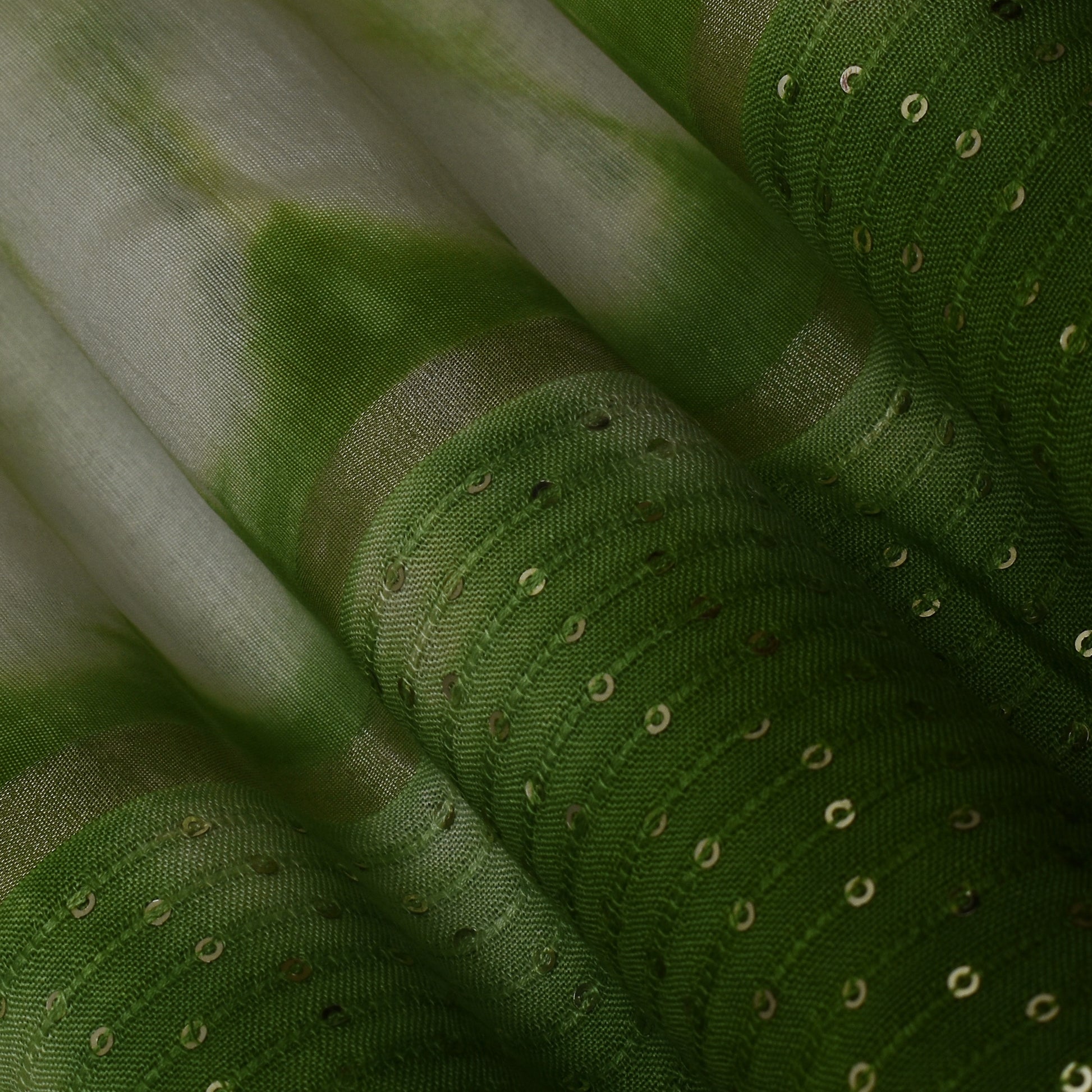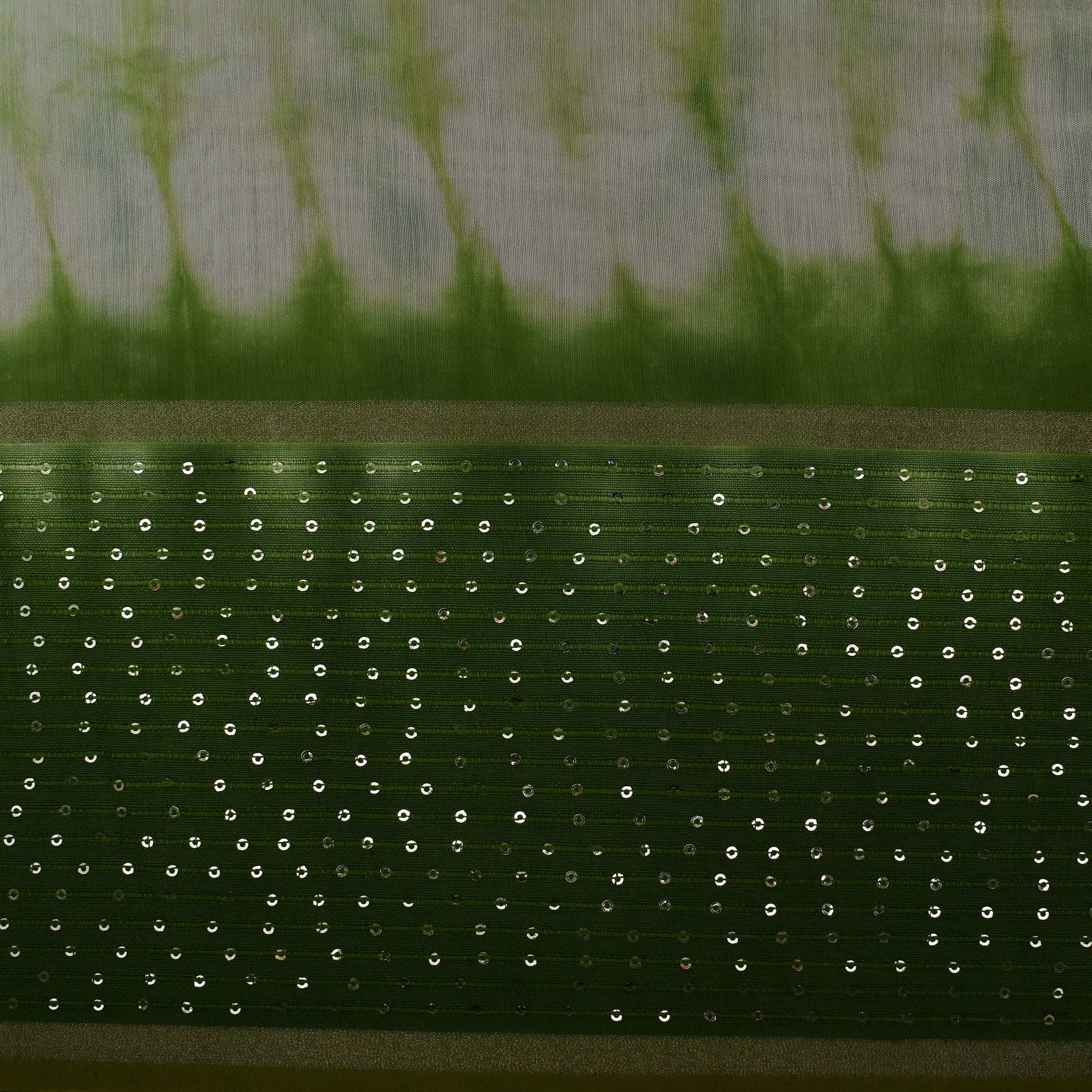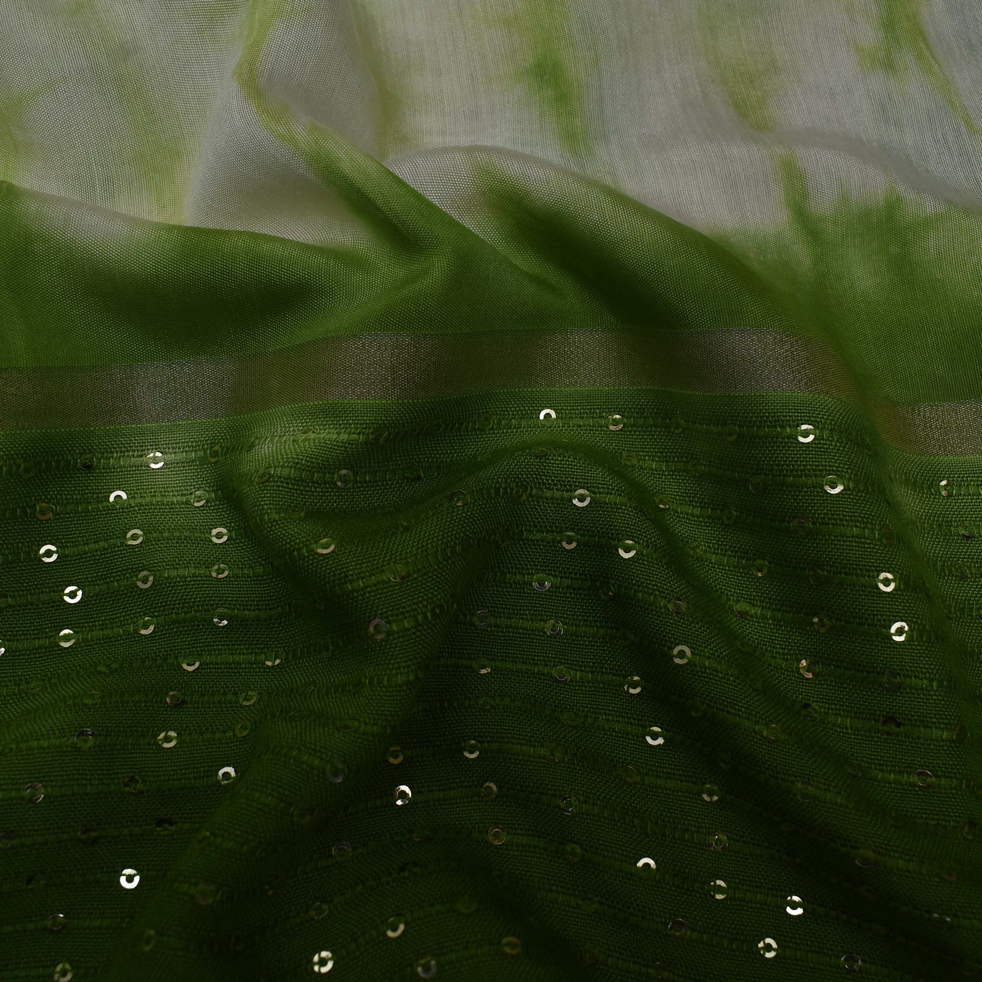 Multi Color Chanderi Tie & Die Border Embroidery Fabric