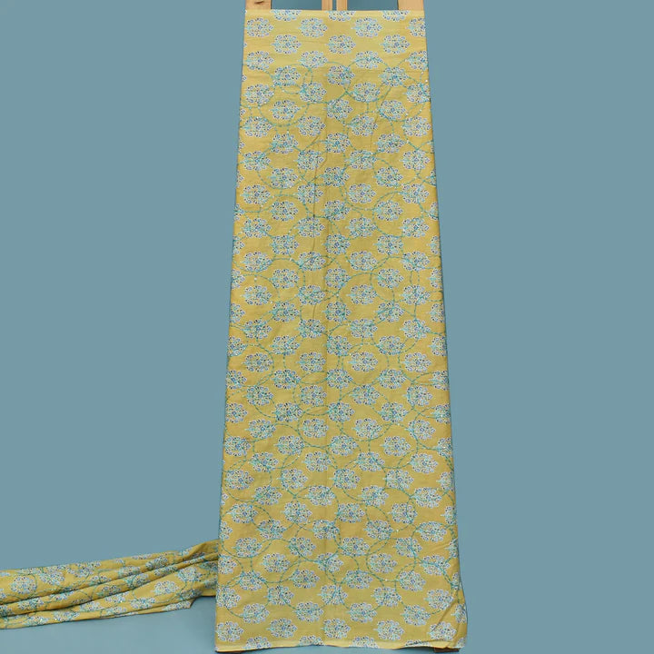 Multi Color Kora Cotton Embroidery Fabric (Cut Pieces 3Mtr)