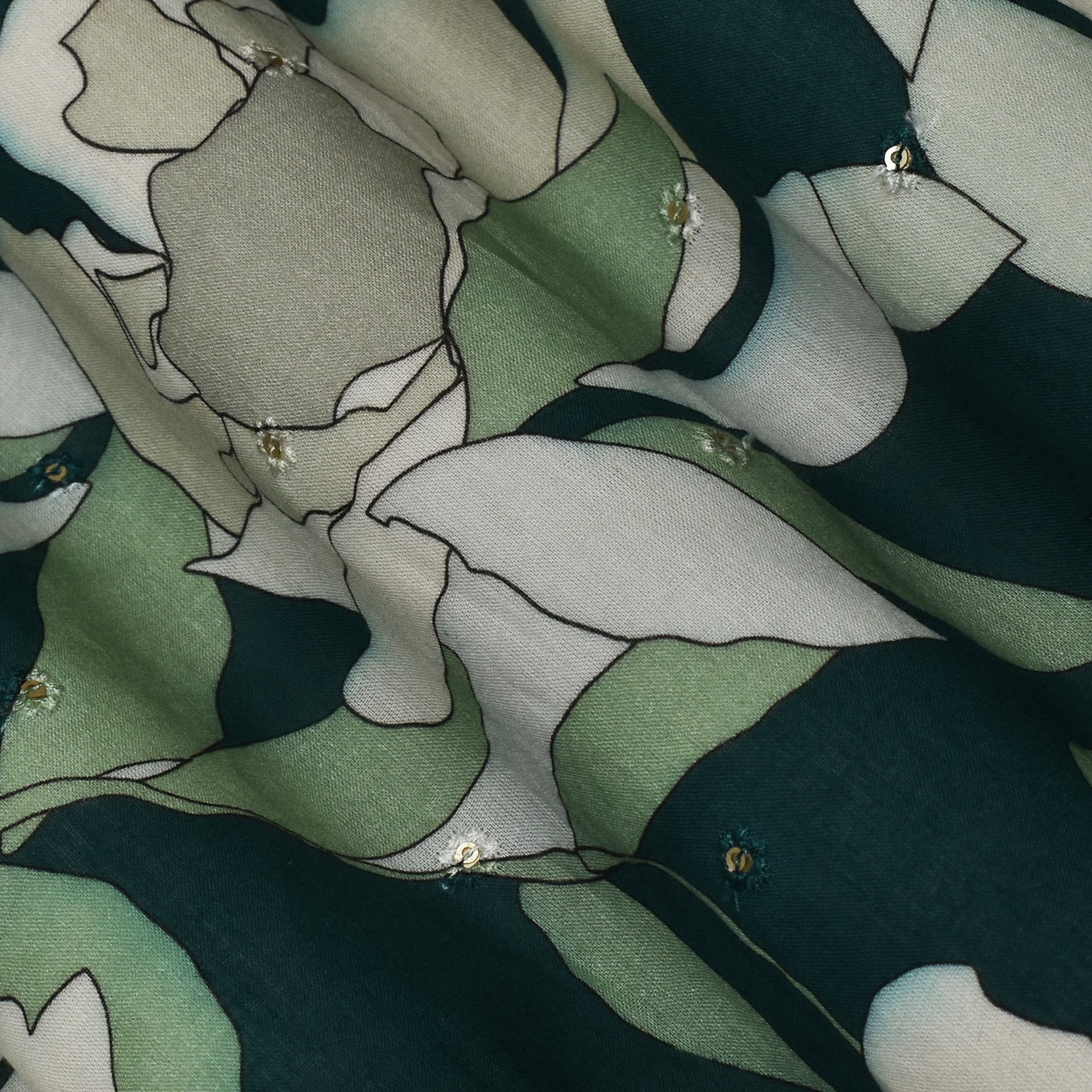Expertly crafted using high-quality Mulmul fabric, this Multi Color Mulmul Print Booti Fabric boasts beautiful, intricate designs that will elevate any project. With its stunning colors and versatile booti print, this fabric is perfect for creating unique and eye-catching pieces, adding a touch of elegance to any garment or home decor.
