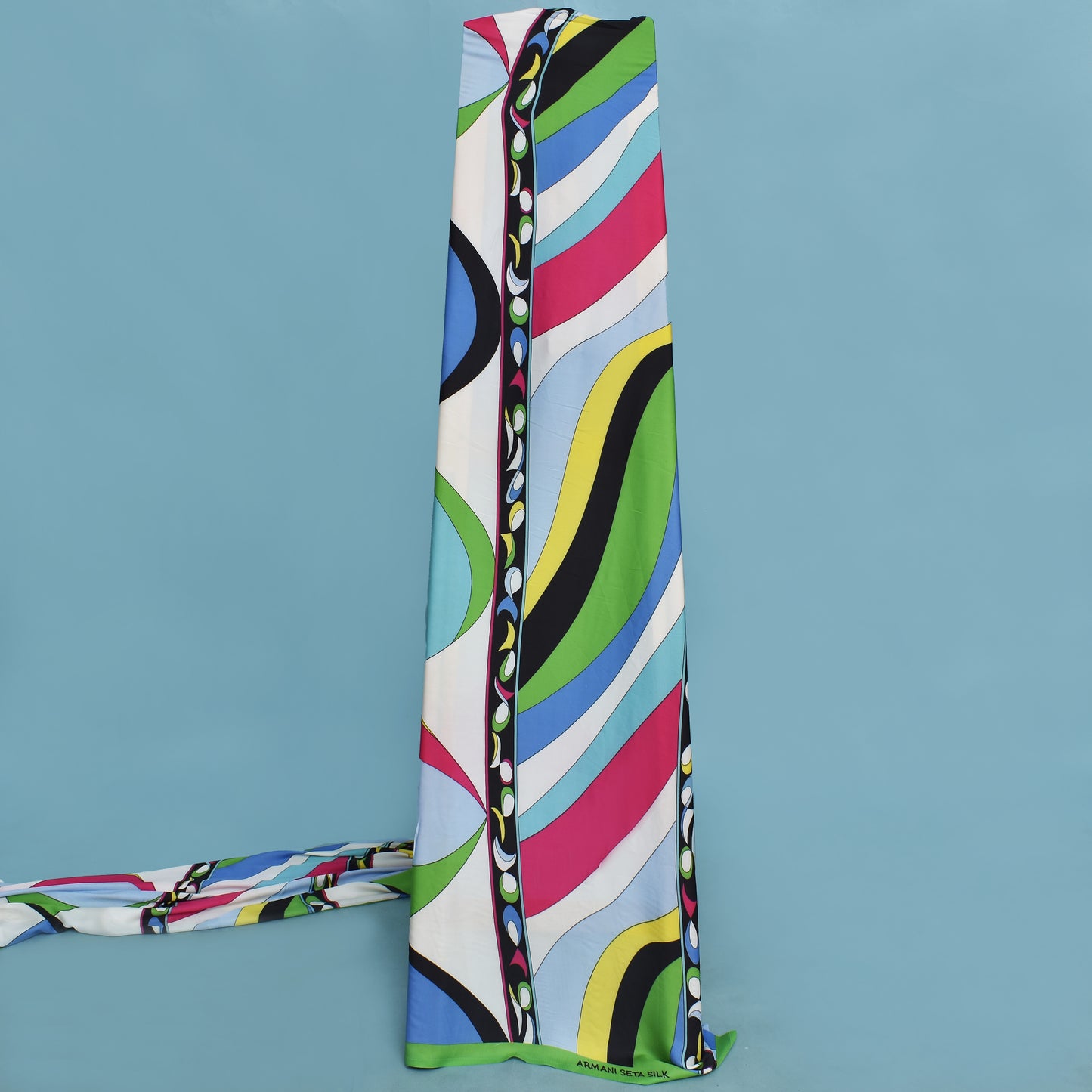 This multi-colored Armani satin print fabric is a luxurious addition to any fashion or décor item. The high-quality fabric boasts vibrant colors and a smooth, soft texture, making it a versatile choice for a variety of uses. Elevate your projects with this premium fabric.