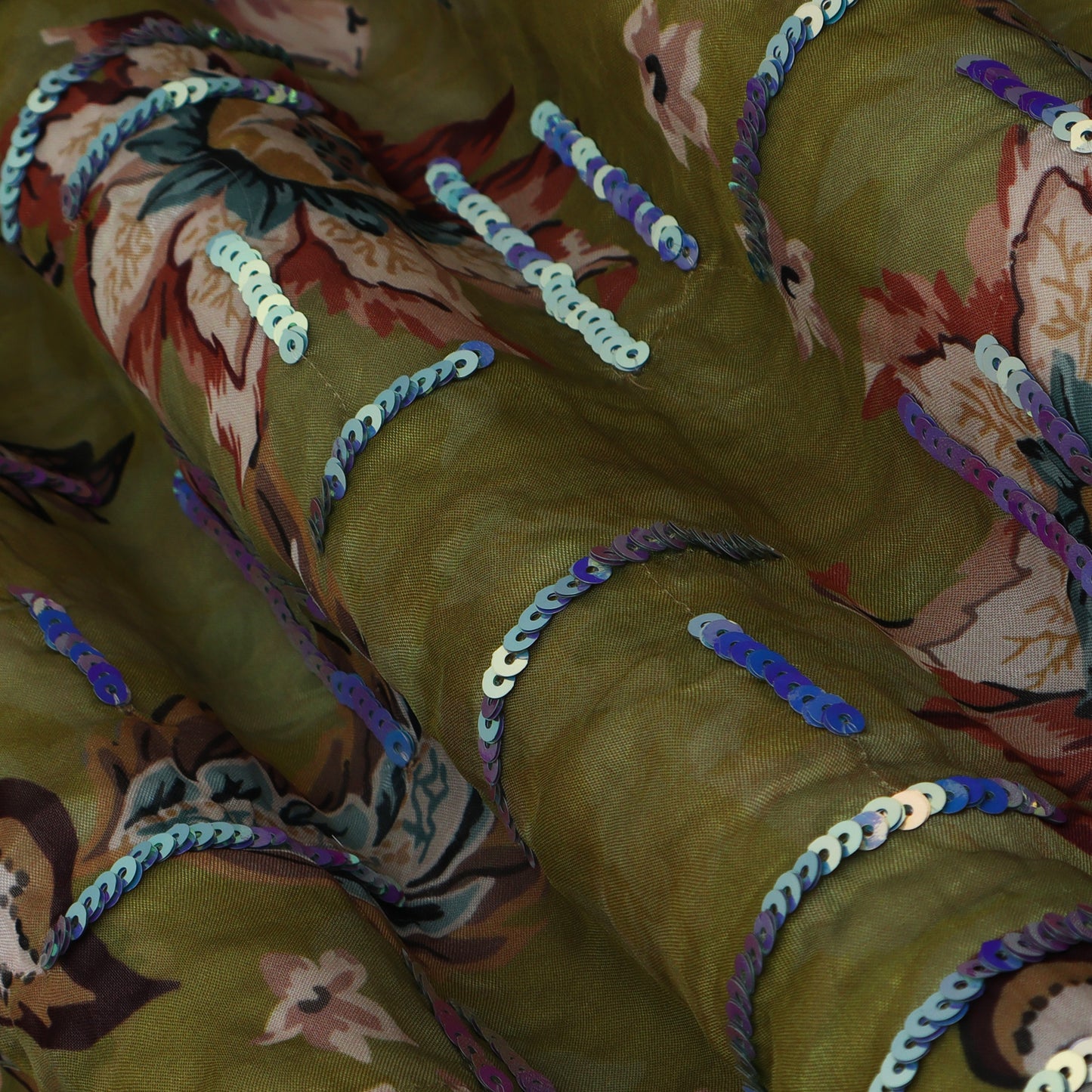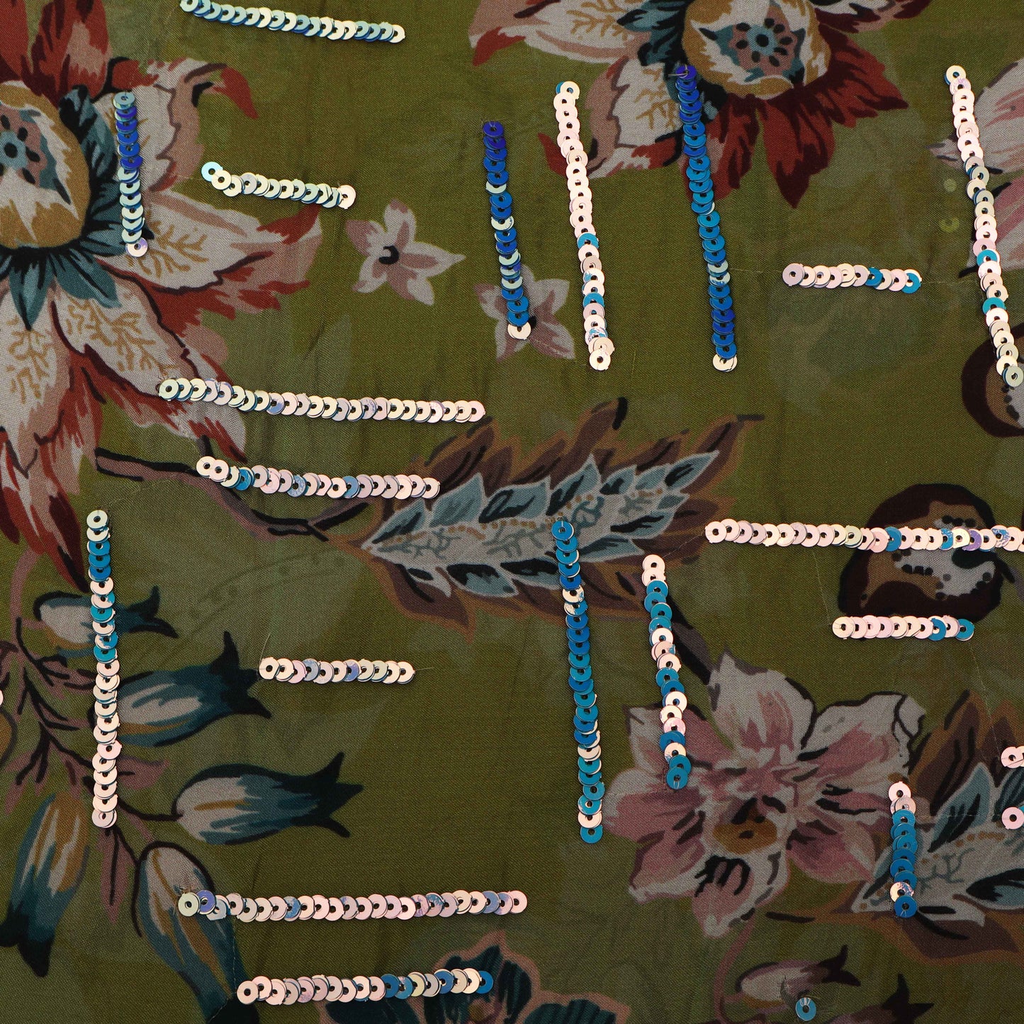 Expertly crafted from high-quality Chinon fabric, this multi-colored embroidery fabric is sure to elevate your sewing projects. Its intricate design and vibrant colors will add a touch of elegance to any garment or home decor item. Made with precision and skill, this fabric is perfect for any sewing enthusiast or professional designer.