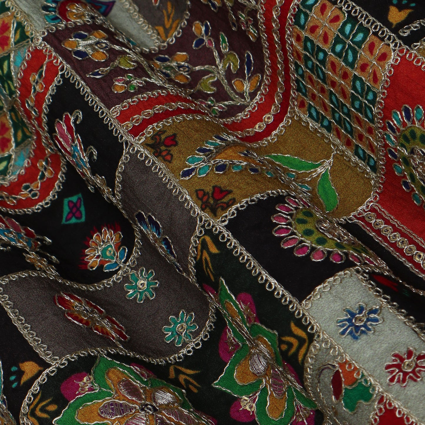 Multi-Colored Crepe Embroidery Fabric