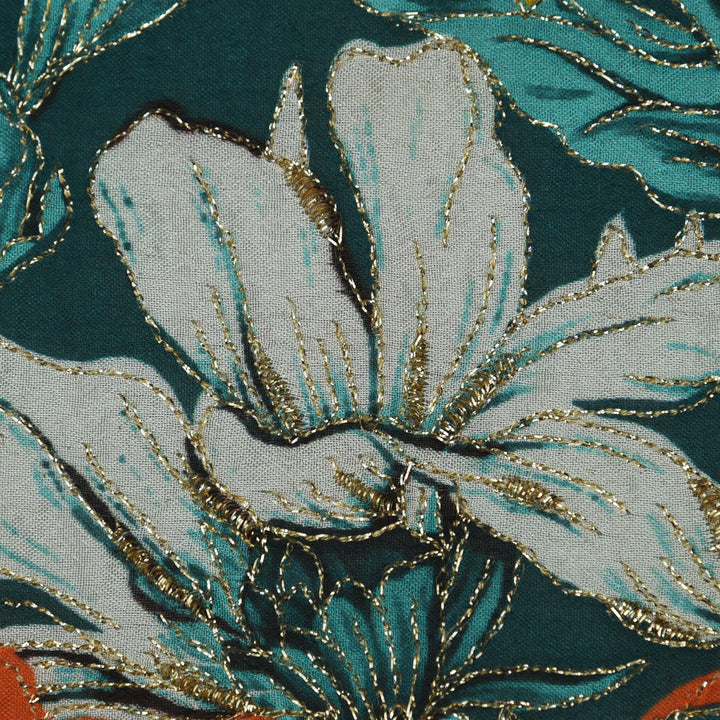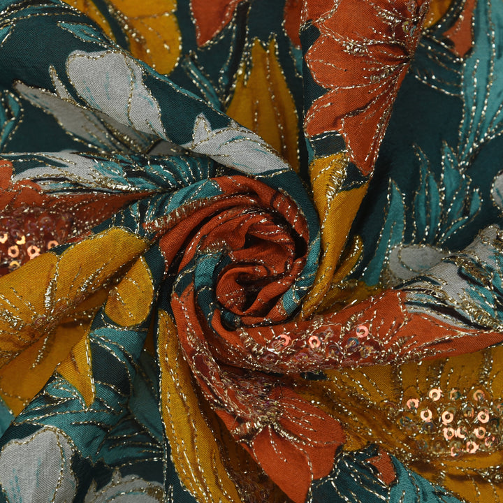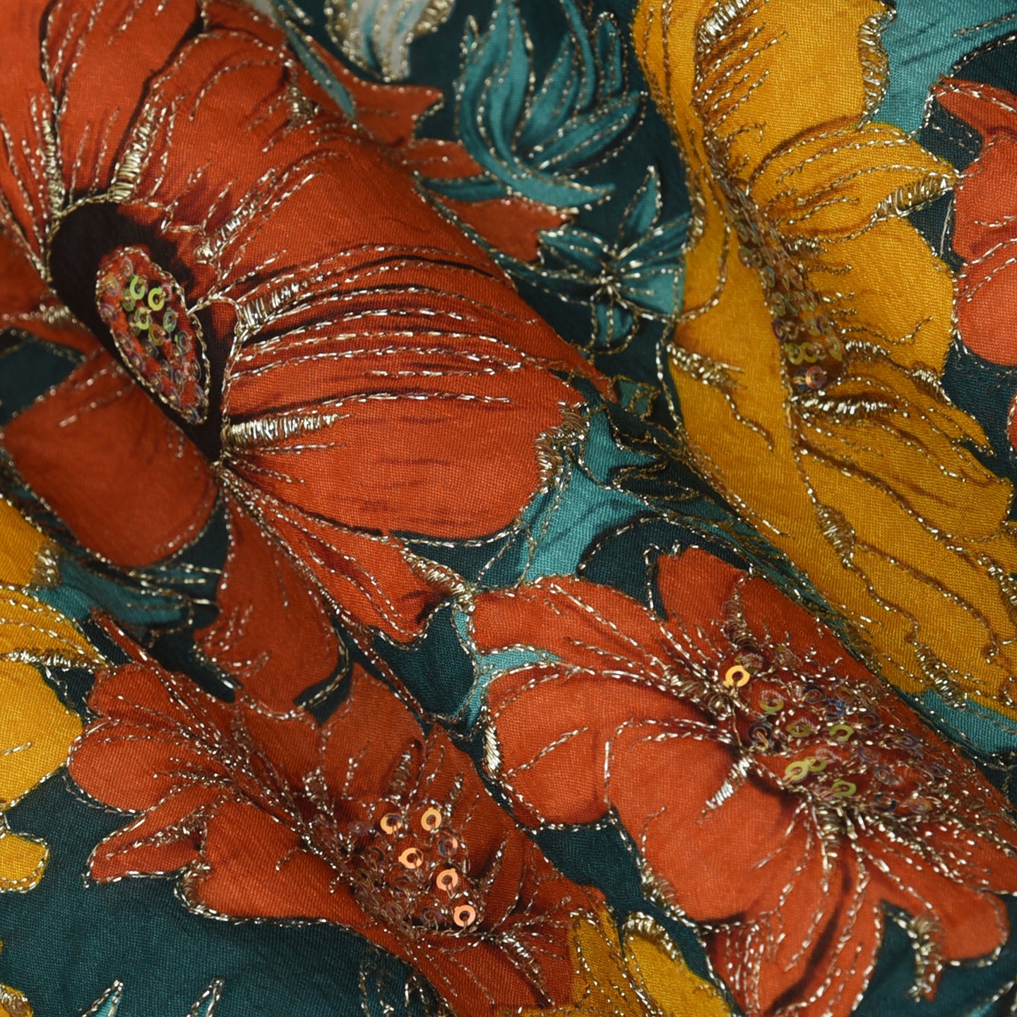 This multicolor chinon position print embroidery fabric features a lightweight and delicate texture. Its vibrant colors and intricate embroidery create a statement look for any fashion project. Made from high-quality materials, it provides both style and durability. Perfect for fashion designers, crafters, and DIY enthusiasts.