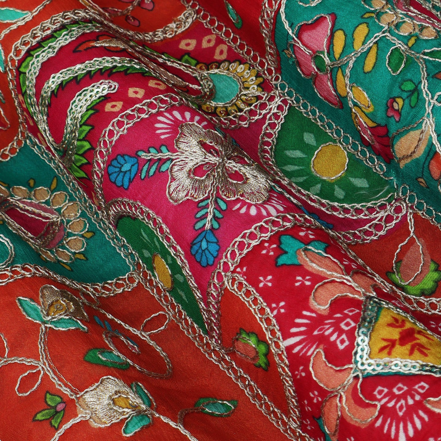 This elegant Multicolor Chinon Position Print Embroidery Fabric offers a versatile and durable option for any sewing project. Its multicolor design adds a touch of vibrancy, while its detailed embroidery fabric adds texture and depth. Perfect for creating unique and eye-catching garments and accessories.