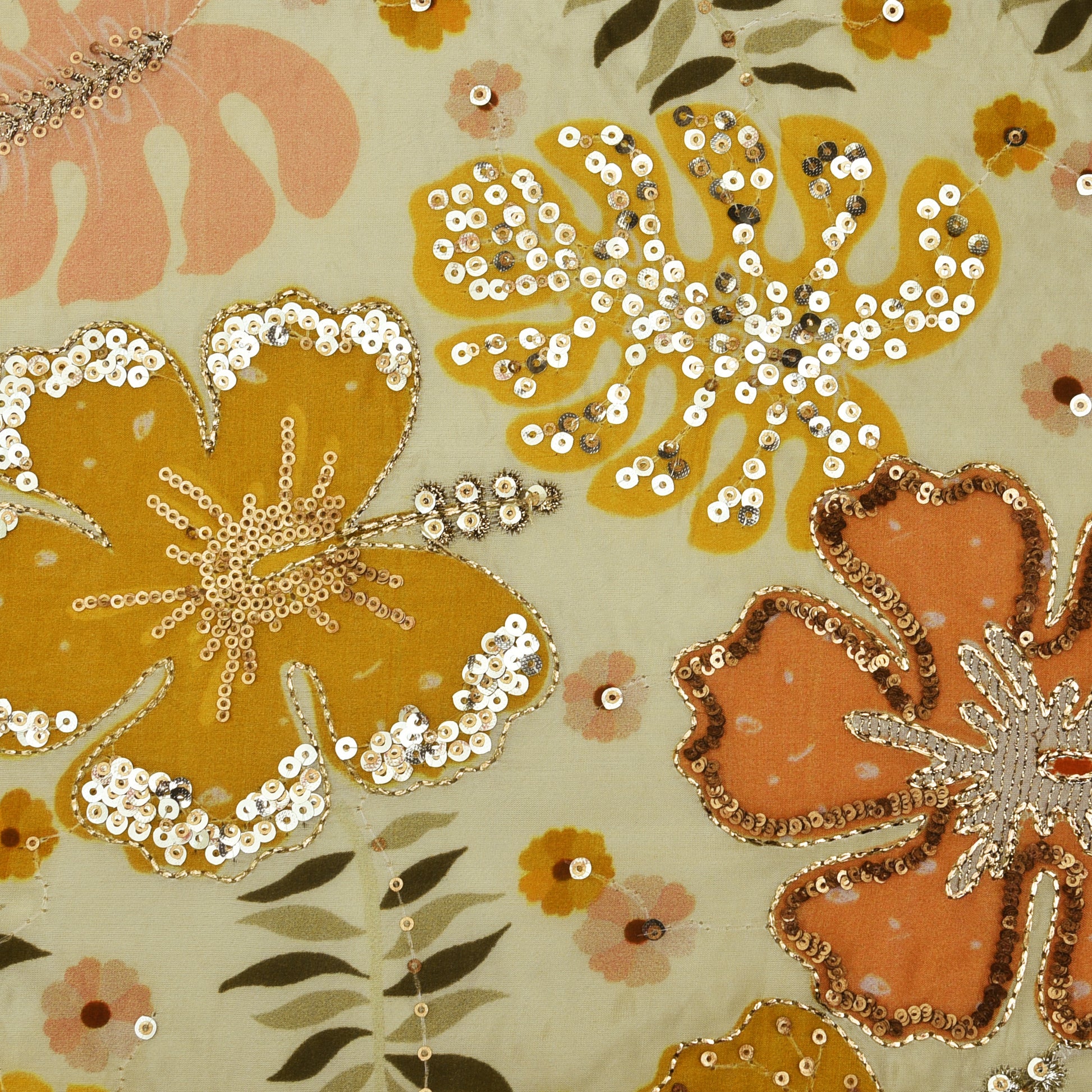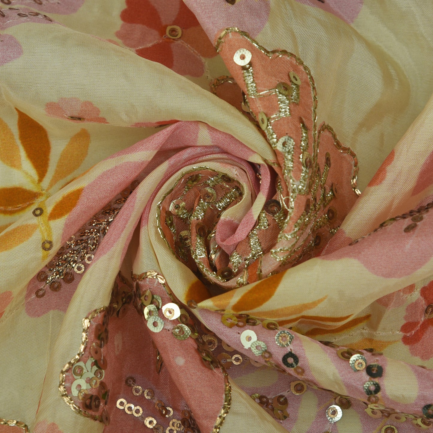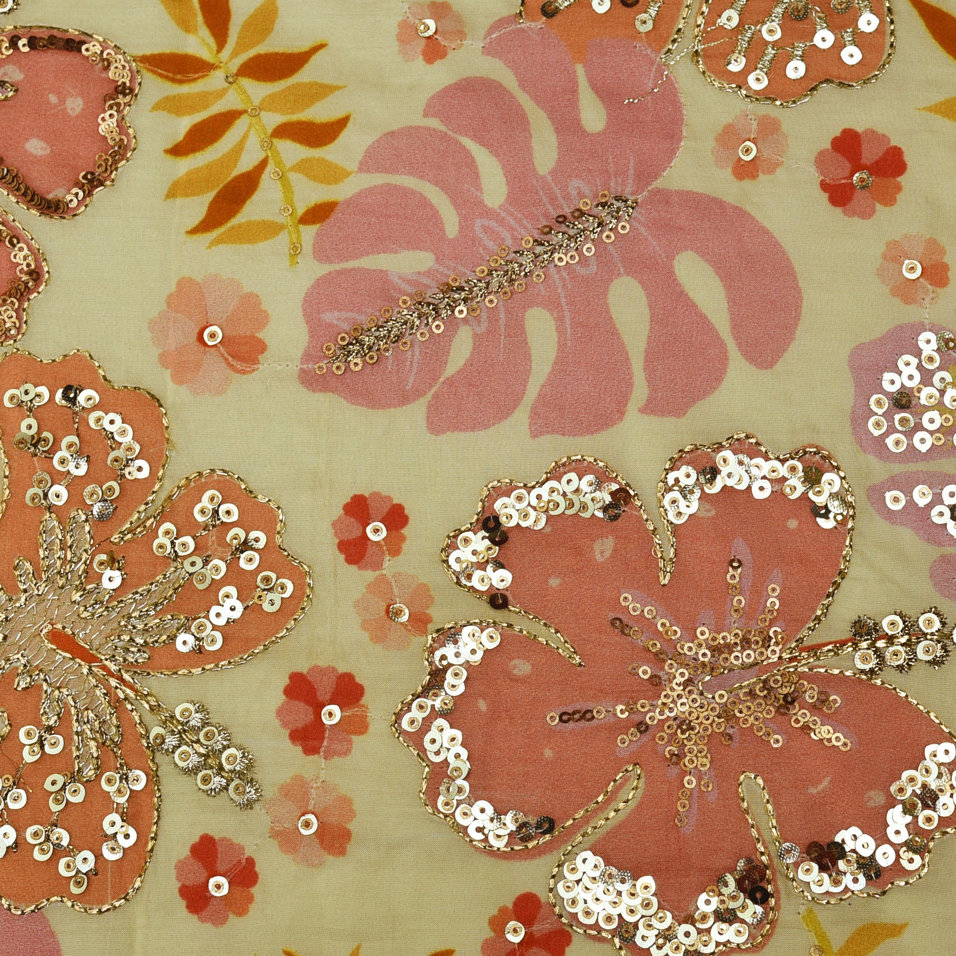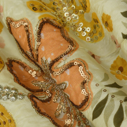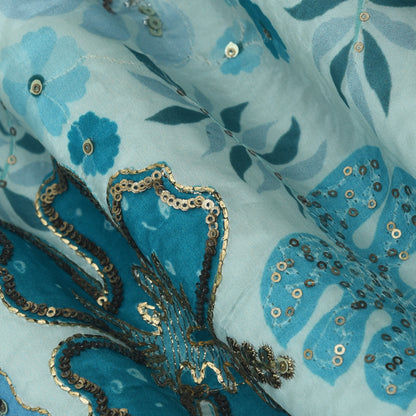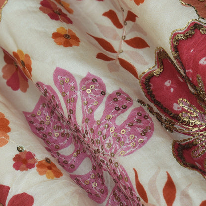 Crepe Position Print Embroidery Fabric