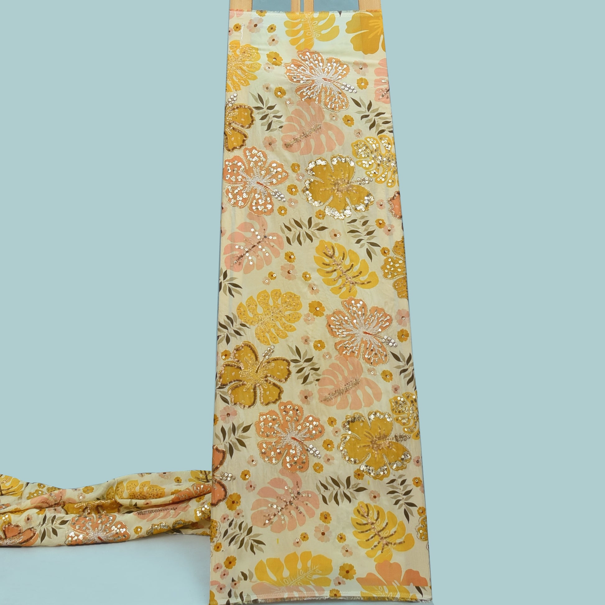 This Crepe Position Print Embroidery Fabric is a must-have for any fashion expert. The intricate print and embroidery designs provide a unique touch to any garment, while the crepe fabric offers a luxurious drape and comfortable feel. Elevate your creations with this high-quality fabric.