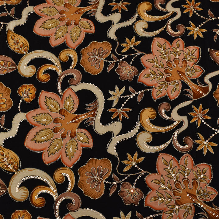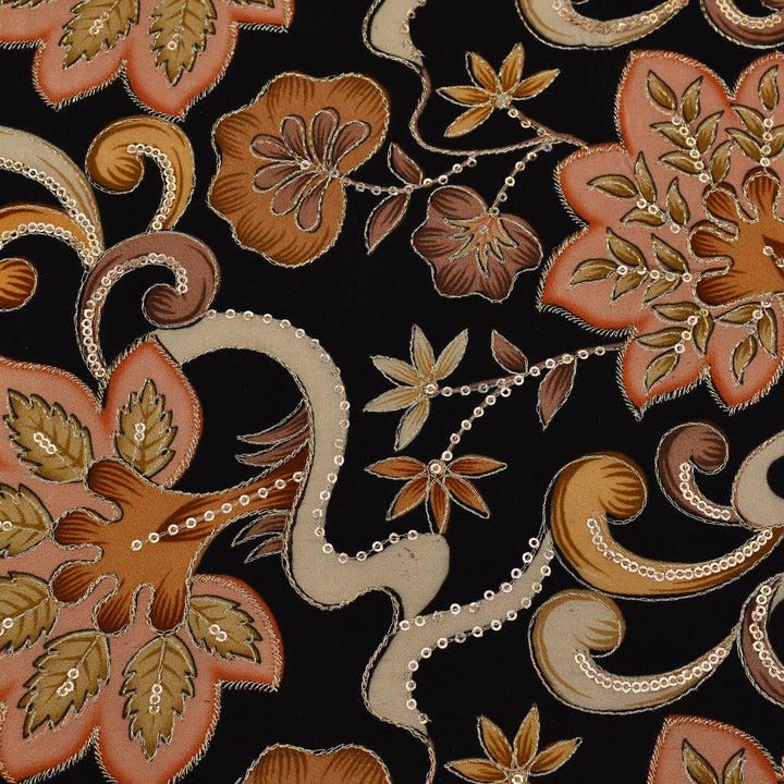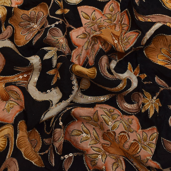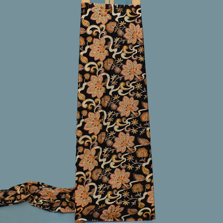 Experience the vibrant colors and elegant design of our Multicolor Crepe Position Print Embroidery Fabric. Made with high-quality material, this fabric combines intricate embroidery and printed patterns for a unique and eye-catching look. Perfect for fashion and home decor projects, elevate your creations with this versatile and stylish fabric.