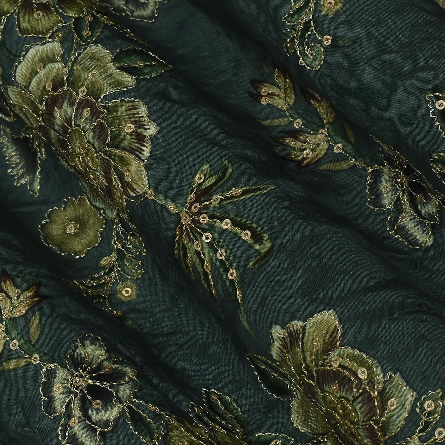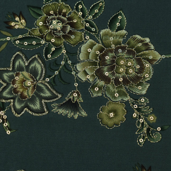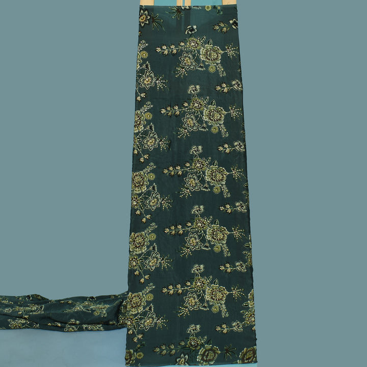 Experience the unique and vibrant Multicolor Crepe Position Print Embroidery Fabric. With its intricate embroidery and colorful print, this fabric adds a pop of color and dimension to any project. Made from durable crepe material, it offers both style and durability. Perfect for creating unique and eye-catching designs.