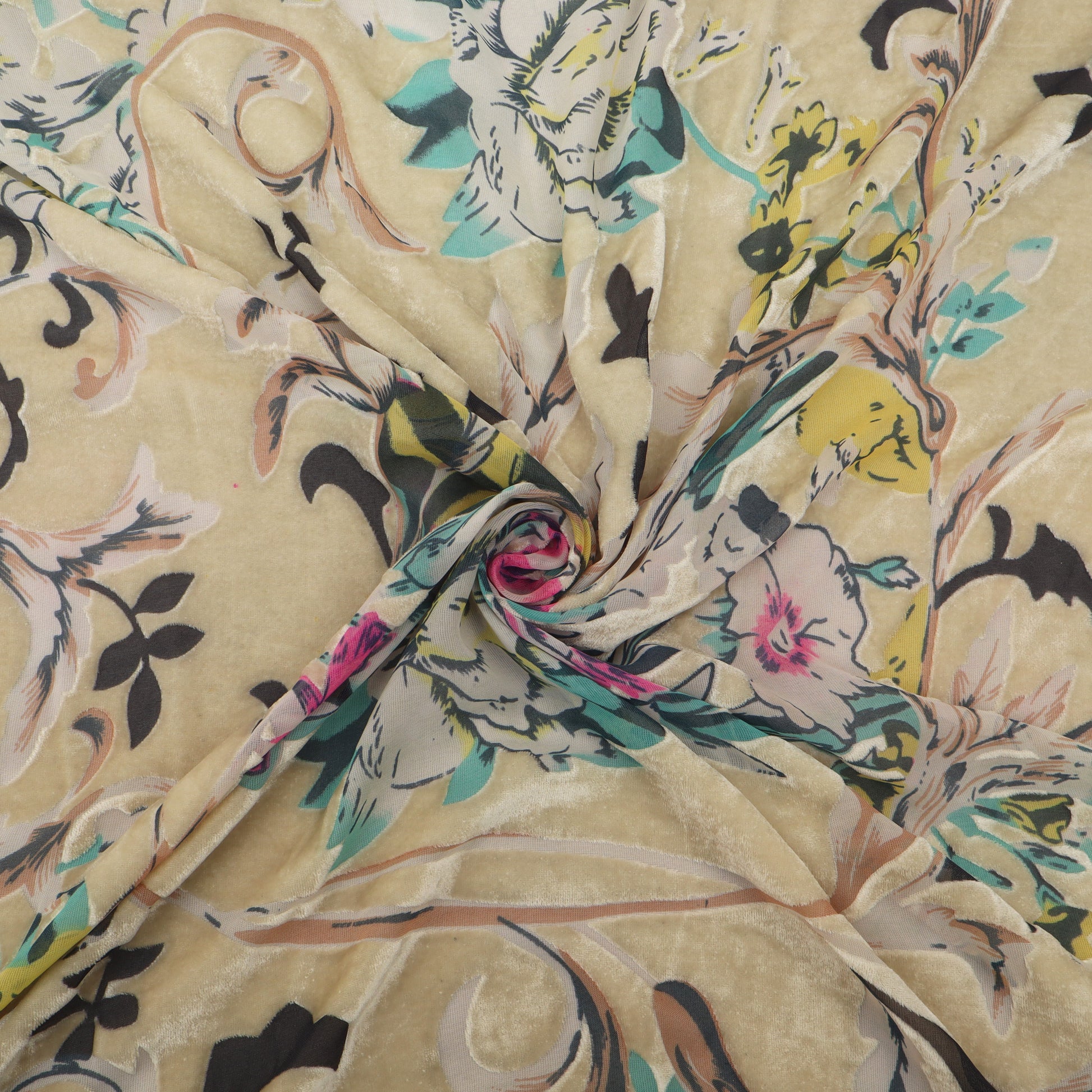 Multicolor Floral Patterns Brasso Velvet Fabric