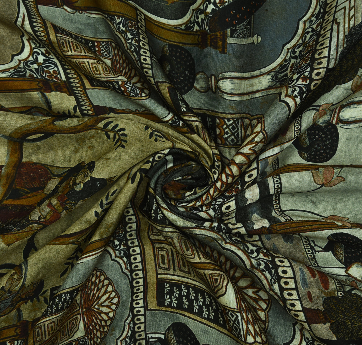 This Multicolor Modal Satin Hydra Print Fabric is expertly designed with a unique print that adds a touch of elegance to any garment. Made from a high-quality blend of Modal and Satin materials, this fabric offers a soft and smooth feel, perfect for comfortable, stylish clothing.