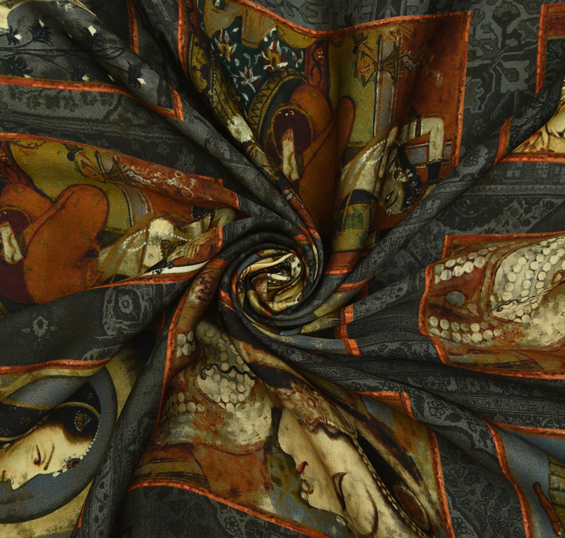 Experience the ultimate in luxurious fabric with our Multicolor Modal Satin Hydra Print Fabric. Made with 100% natural modal fibers, this fabric is soft, smooth, and breathable. Its stunning hydra print adds a touch of modernity to any project. Elevate your creations with this versatile and high-quality fabric.