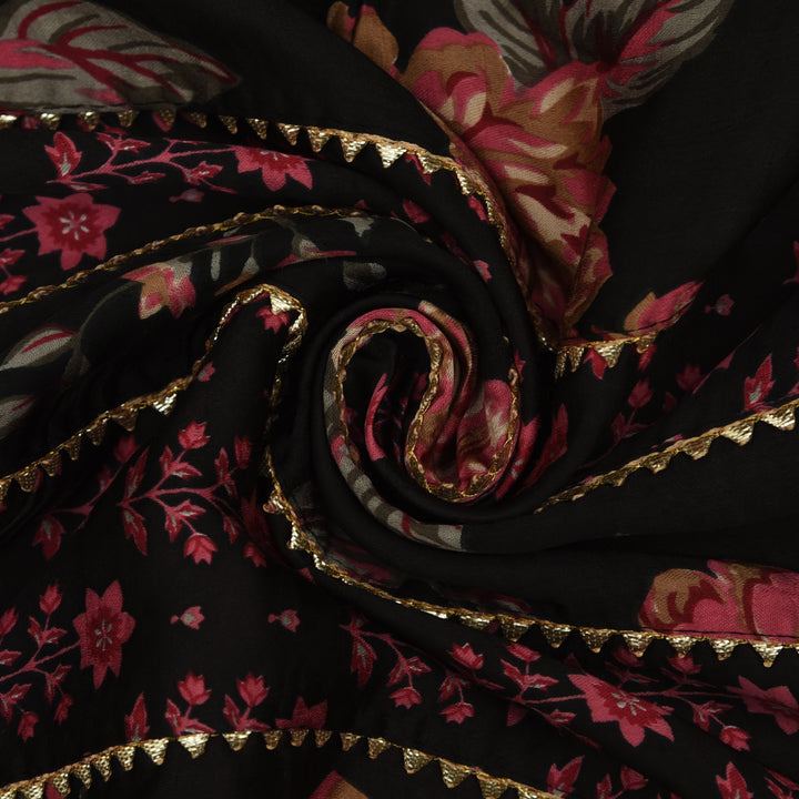 Multicolor Modal Satin Print Gota Work Fabric
