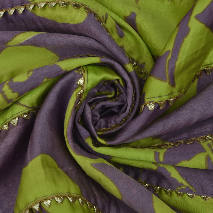 Enhance any outfit with our Multicolor Modal Satin Print Gota Work Fabric. Made from high-quality materials, this fabric features a beautiful multicolor print and intricate Gota work for an elegant touch. With its soft and smooth texture, it offers both style and comfort. Perfect for creating stunning ethnic wear.