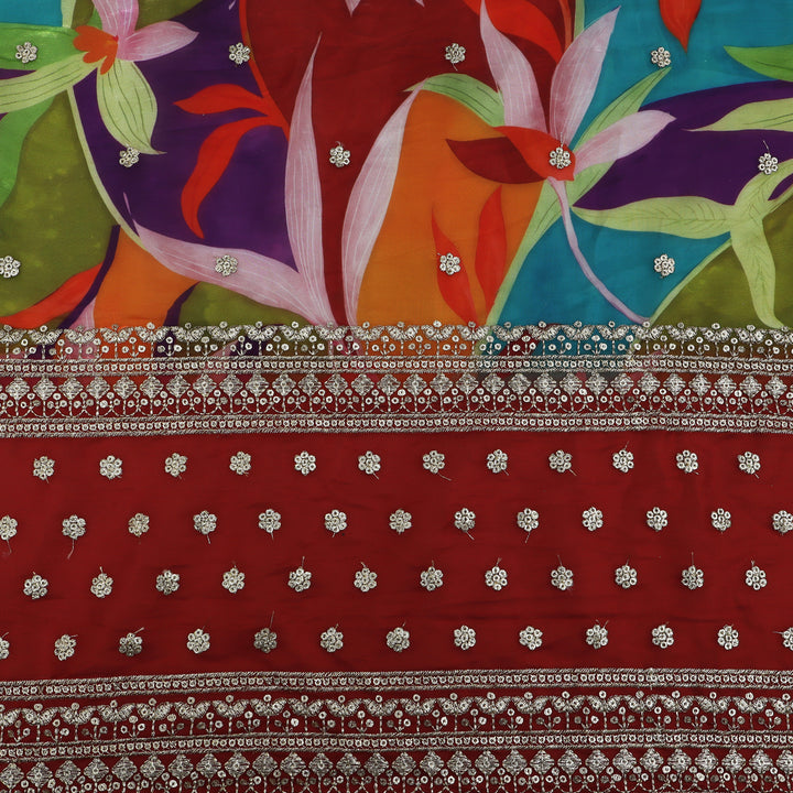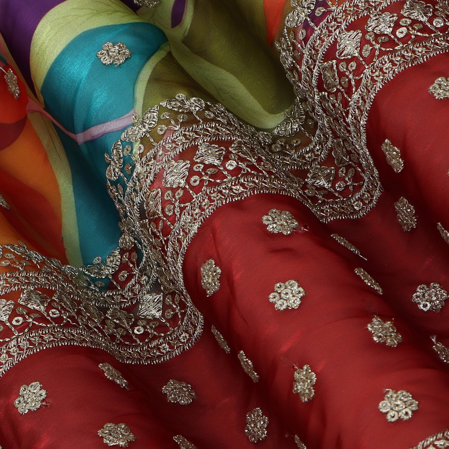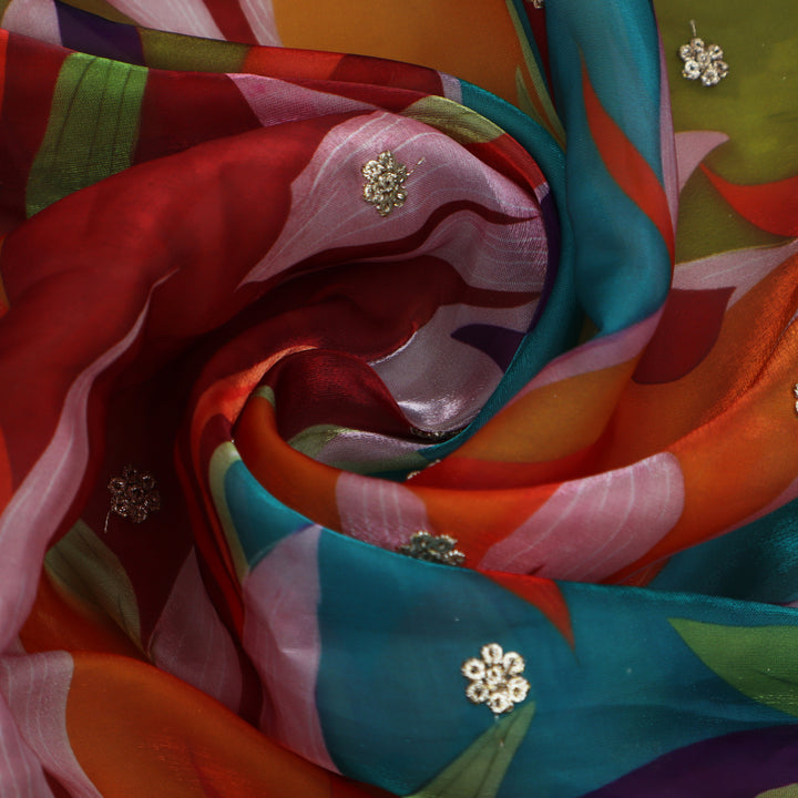 This Multicolor Organza Print Embroidery Fabric offers stunning colors and intricate designs. Made from high-quality material, it is perfect for creating elegant and eye-catching garments. With its versatile use and unique patterns, this fabric is a must-have for any fashion-forward individual. Transform your wardrobe with this beautiful and durable fabric.
