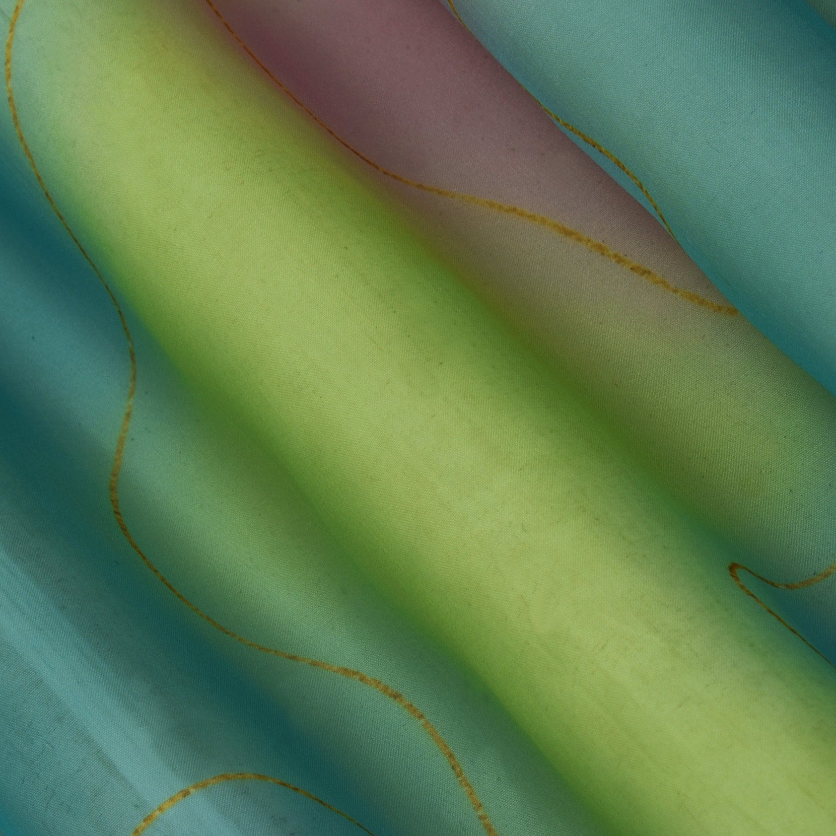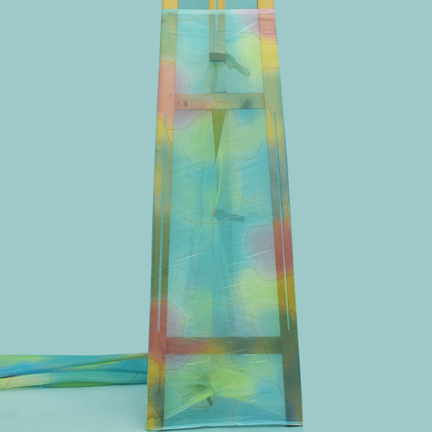 The Multicolor Organza Print Fabric features a variety of vibrant colors and a delicate organza material. Perfect for creating eye-catching and unique garments or home decor items. The lightweight fabric offers breathability and a luxurious feel, making it a versatile choice for any project.