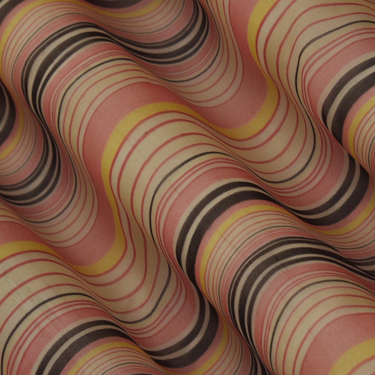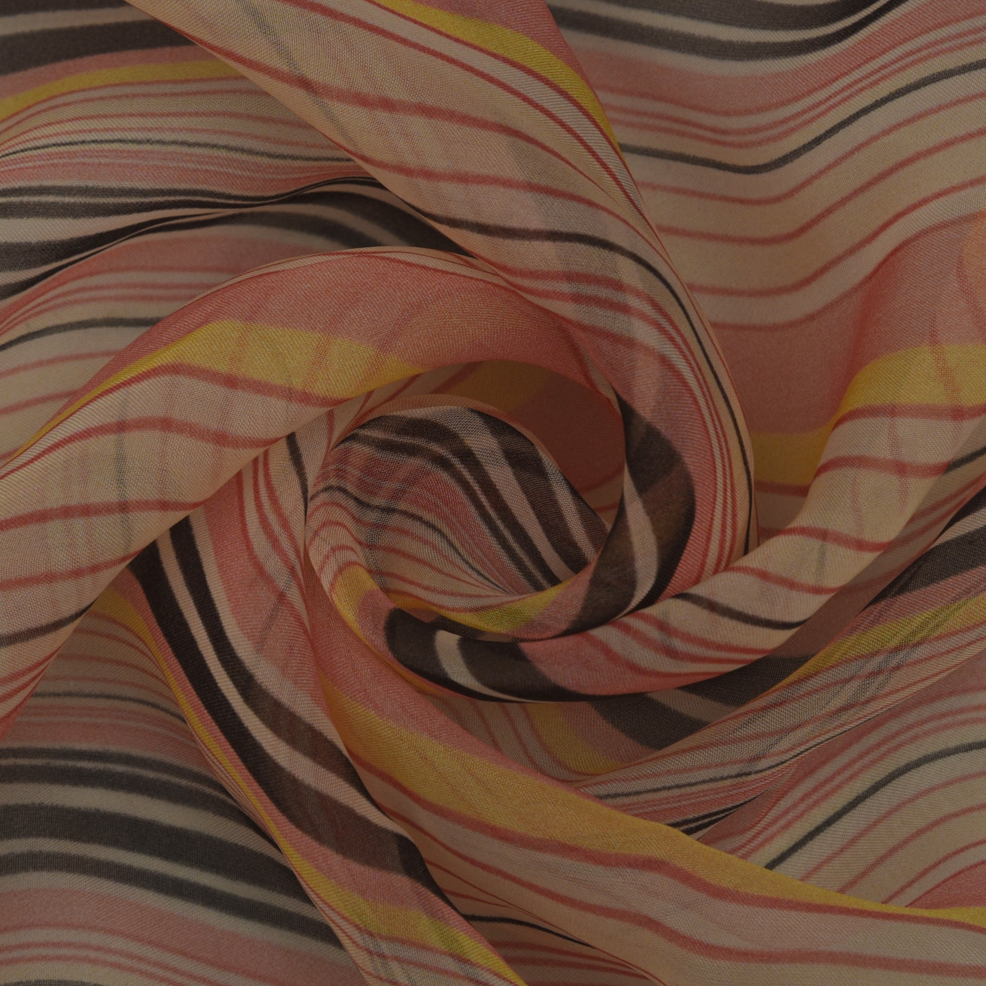 This multicolor organza print fabric features a unique and vibrant design, making it perfect for adding a pop of color to any sewing project. The lightweight and sheer material adds a touch of elegance and versatility, suitable for various dressmaking and home decor applications. With its bold print and high-quality material, this fabric is ideal for any artistic and creative endeavor.