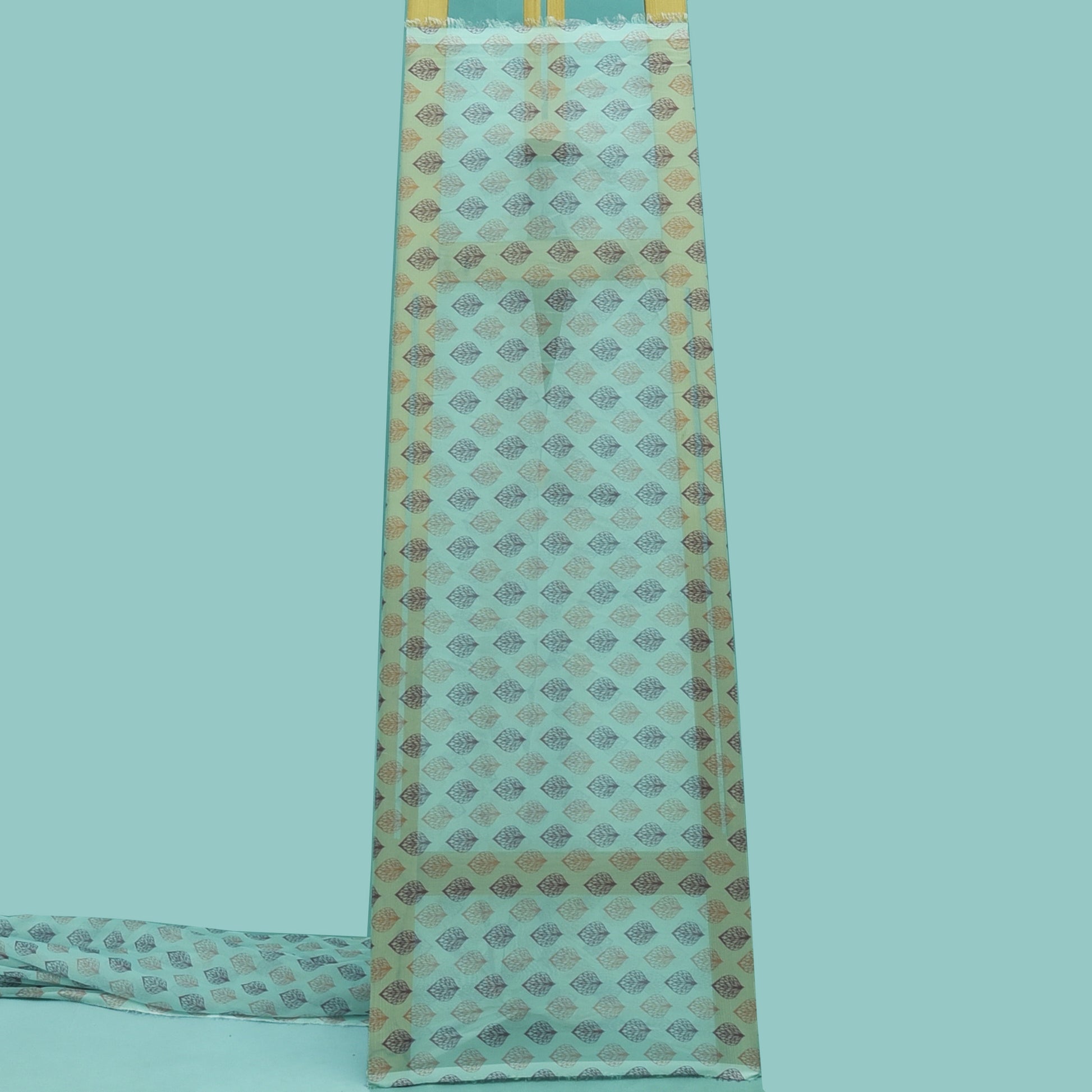 This multicolor organza print fabric features a unique and vibrant design, making it perfect for adding a pop of color to any sewing project. The lightweight and sheer material adds a touch of elegance and versatility, suitable for various dressmaking and home decor applications. With its bold print and high-quality material, this fabric is ideal for any artistic and creative endeavor.