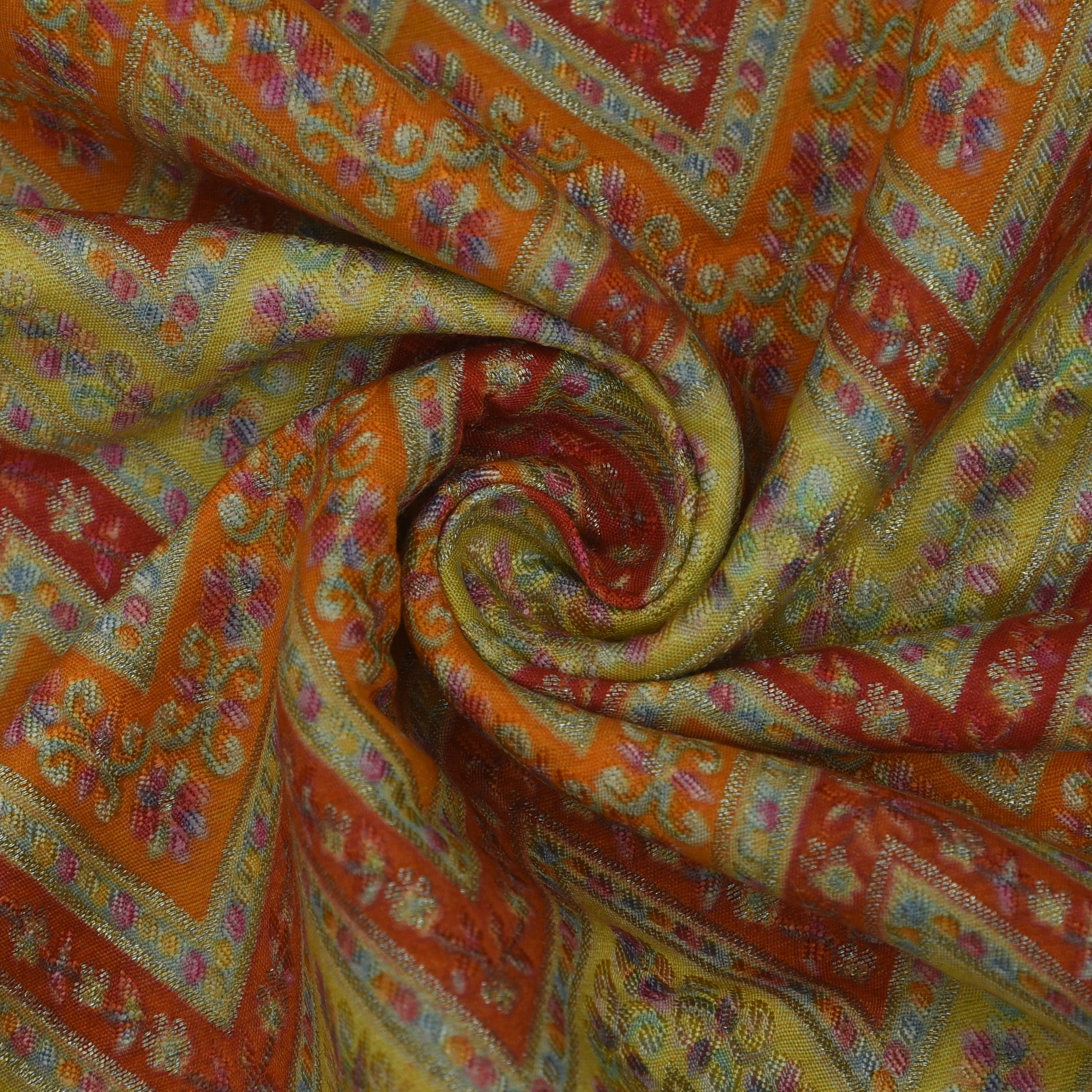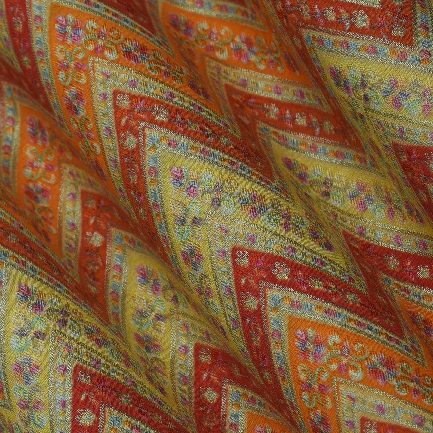 This high-quality multicolor pure brocade fabric is perfect for adding a touch of elegance and luxury to any project. With its unique multicolor design, this fabric will add depth and interest to your creation. Made with pure materials, it is durable and versatile for all your creative needs.