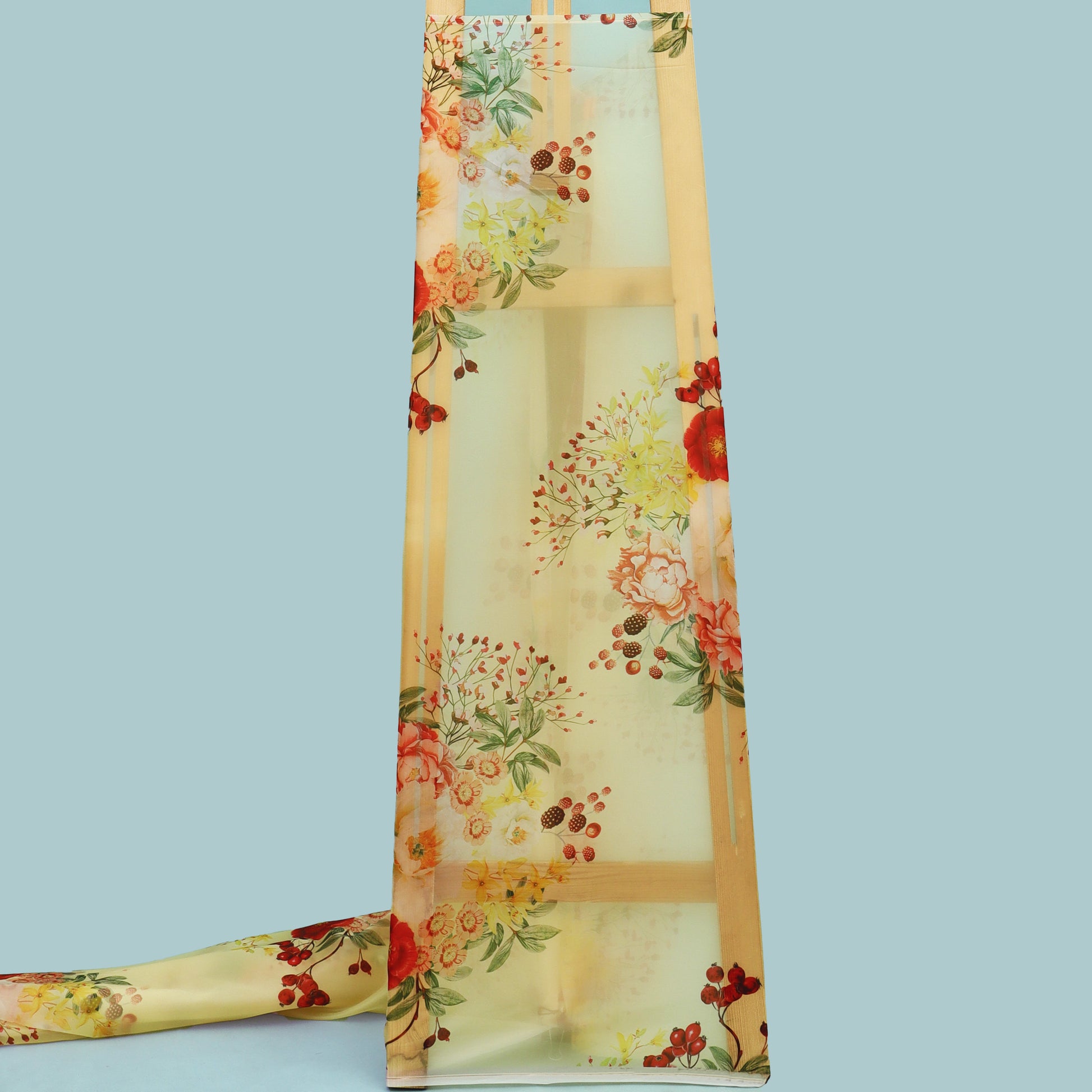 This multicolor satin organza print fabric offers a luxurious and elegant touch to any garment or project. With its soft, silky texture and eye-catching design, it is perfect for adding a touch of sophistication. Made with high-quality materials, this fabric is also durable and easy to work with.