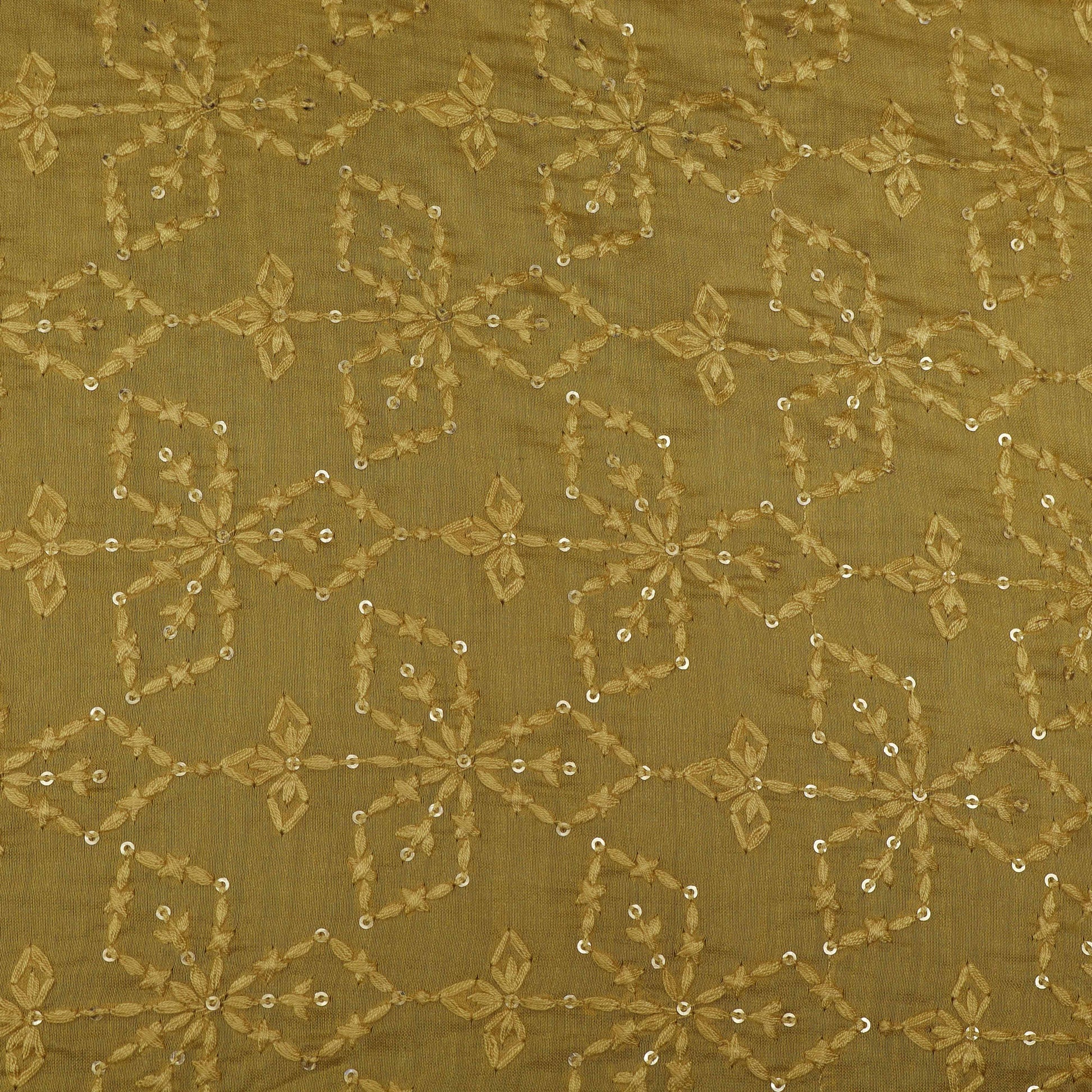 Mustard Color Chanderi Embroidery Fabric