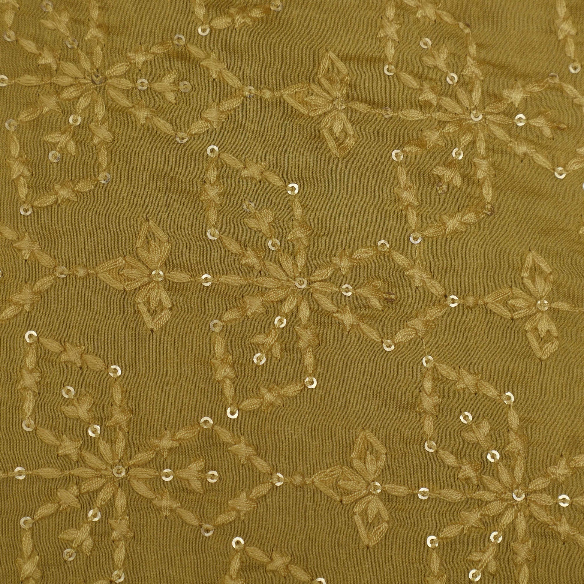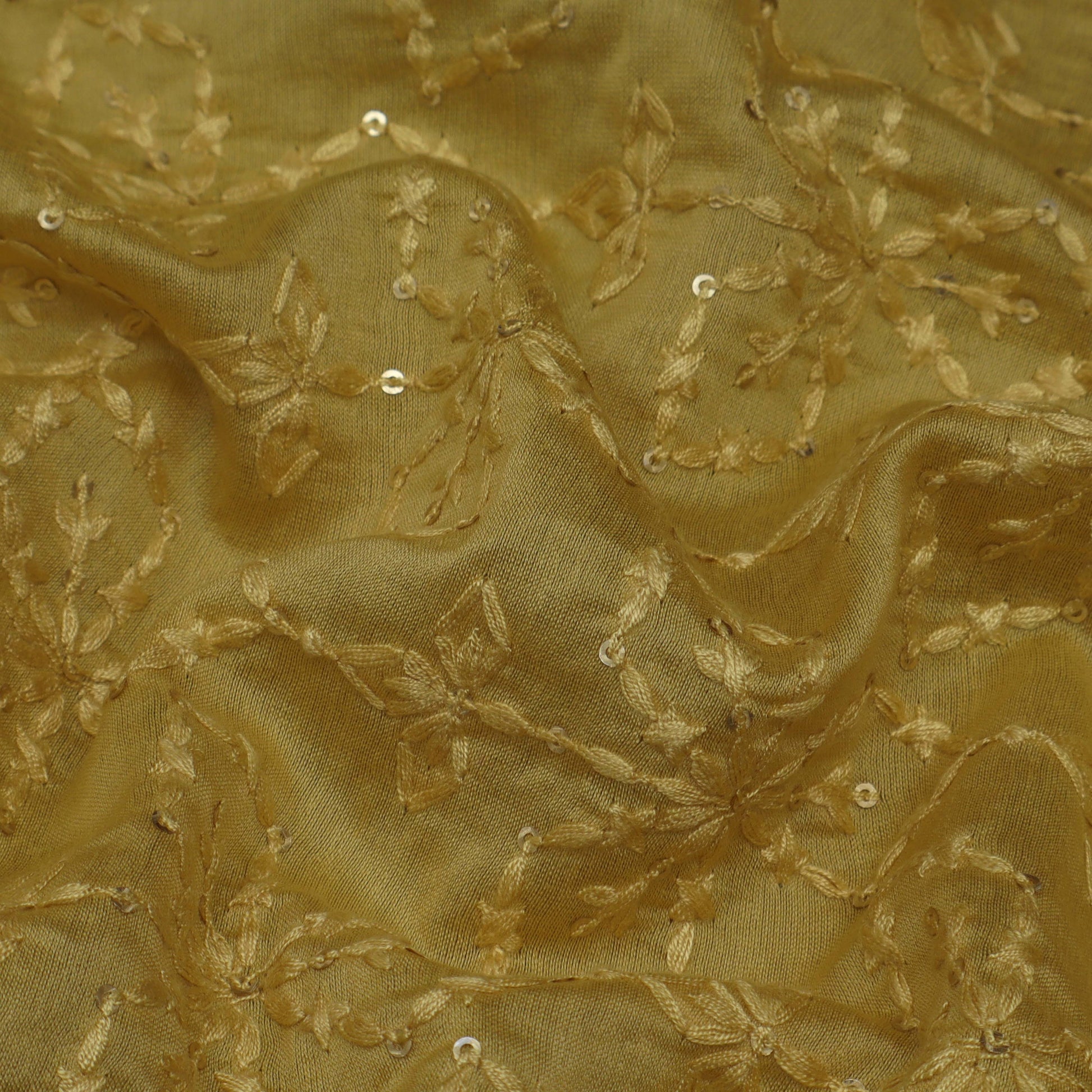 This mustard color Chanderi embroidery fabric is expertly crafted with precision, making it the perfect material for any project. With its intricate embroidery and unique color, it will add a touch of elegance and sophistication to any garment or home decor item. Made from high-quality materials, this fabric is both durable and luxurious. Embrace the beauty and versatility of this fabric for your next project.