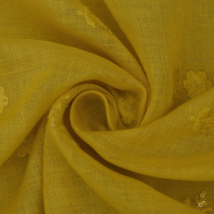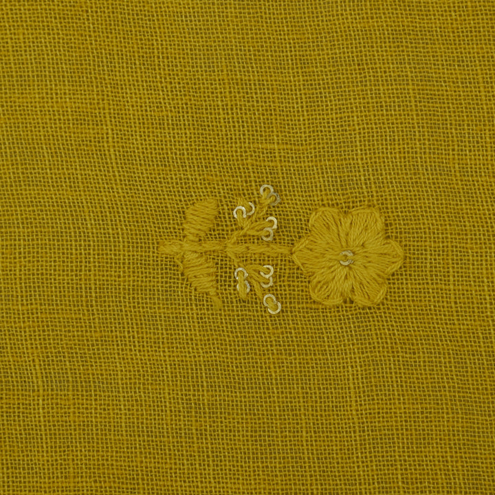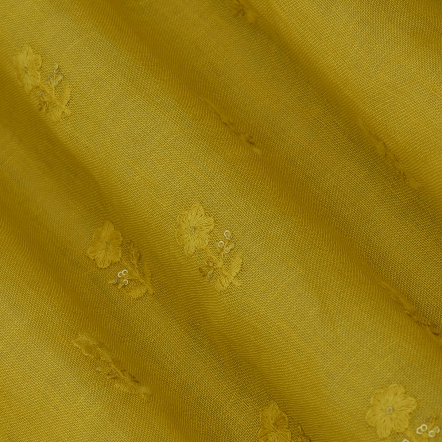 This mustard color chanderi embroidery fabric is crafted with finesse and intricate details. Made with high-quality materials, this fabric is durable and adds a touch of elegance to any design. With its unique texture and vibrant color, it's perfect for creating trendy and stylish outfits.