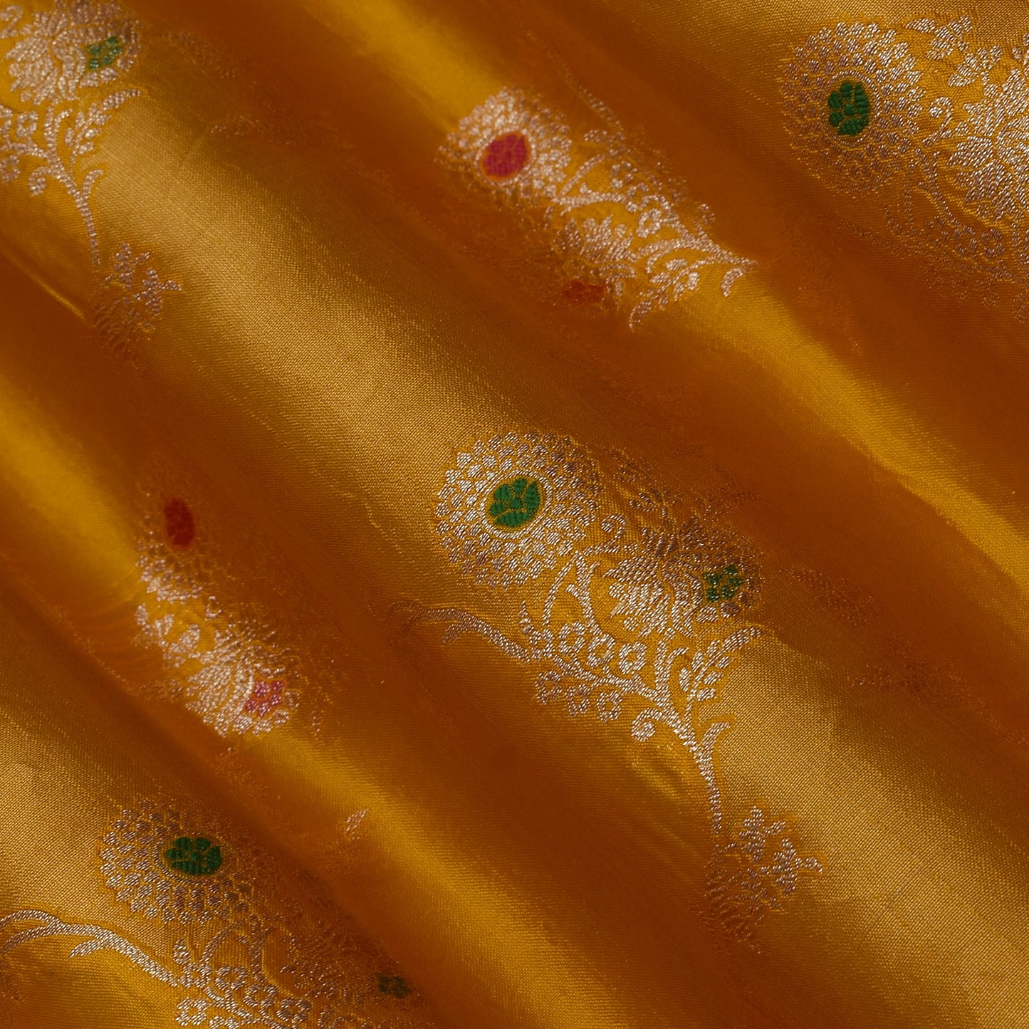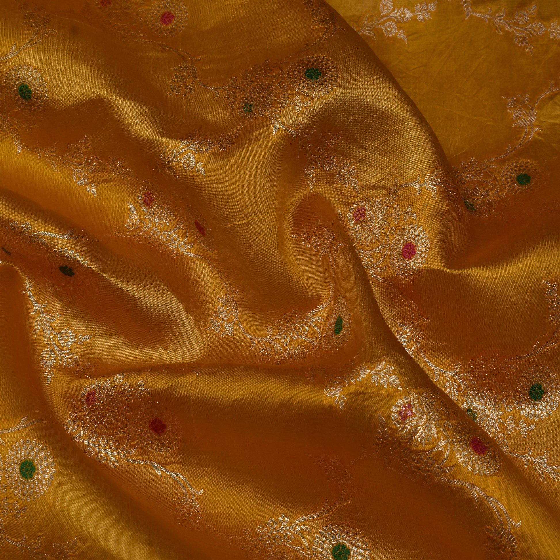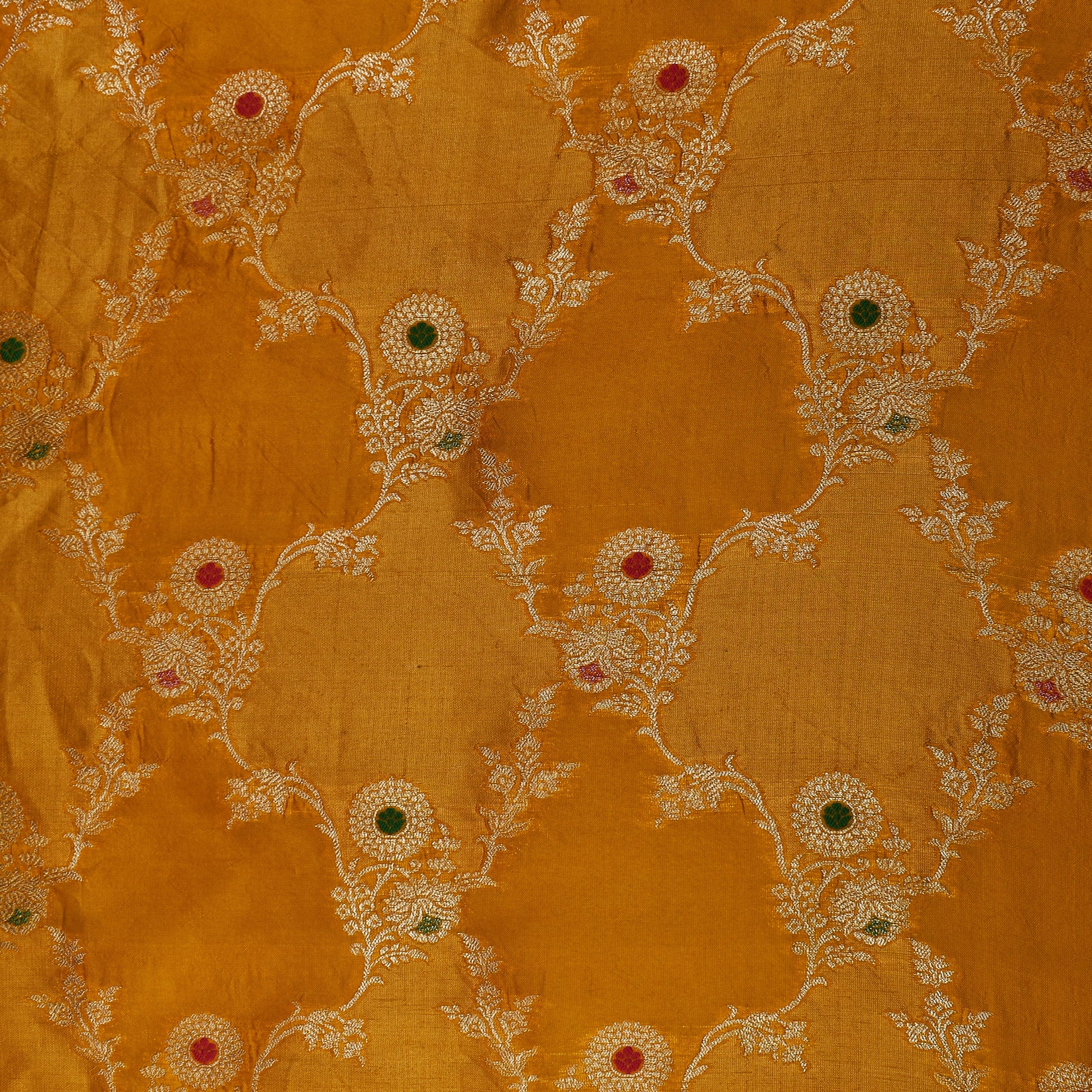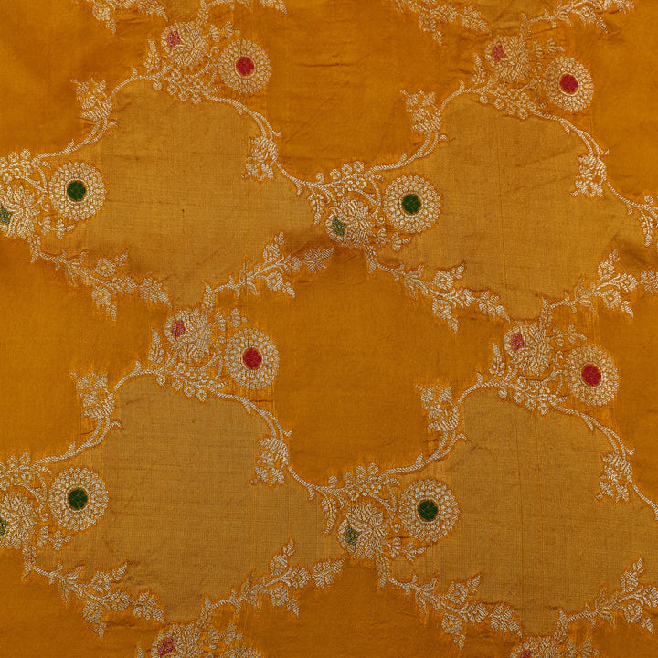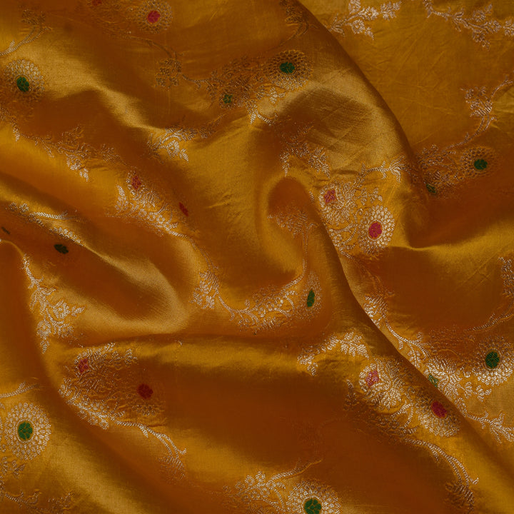 Crafted from high-quality Katan silk, this Mustard Color Meena Brocade Fabric boasts intricate designs and a luxurious feel. Perfect for designer clothing, this fabric is sure to elevate any look with its vibrant color and impeccable craftsmanship. Experience the beauty of handwoven silk with this exquisite fabric.